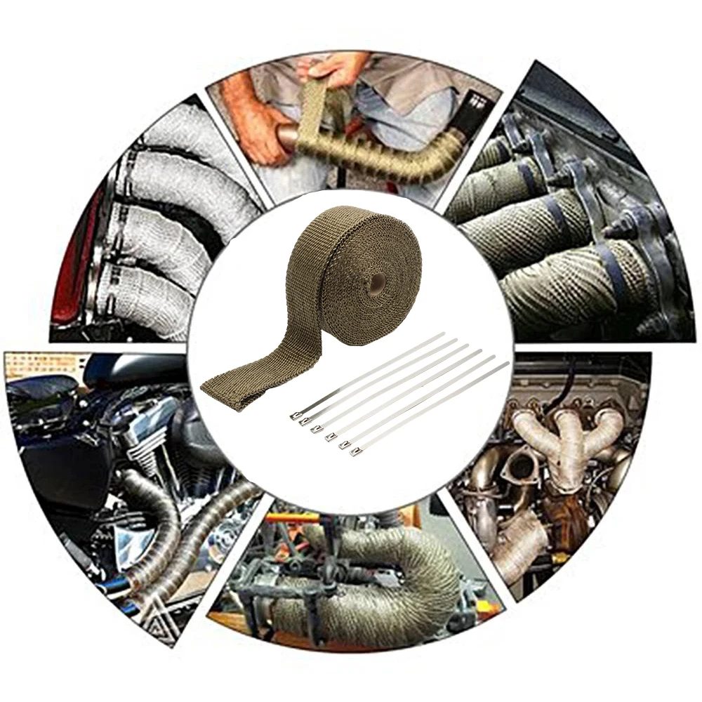 50 мм * 10 м теплоотводящая труба для мотоцикла теплозащитная термолента комплект для изоляции стекловолокна выхлопная лента с нержавеющими стяжками
