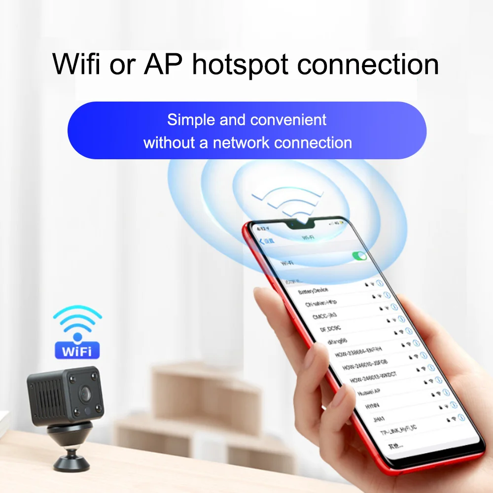 О: камера подключена через Wi-Fi. После загрузки приложения на телефон, вы можете легко подключиться к камере, сканируя QR-код.