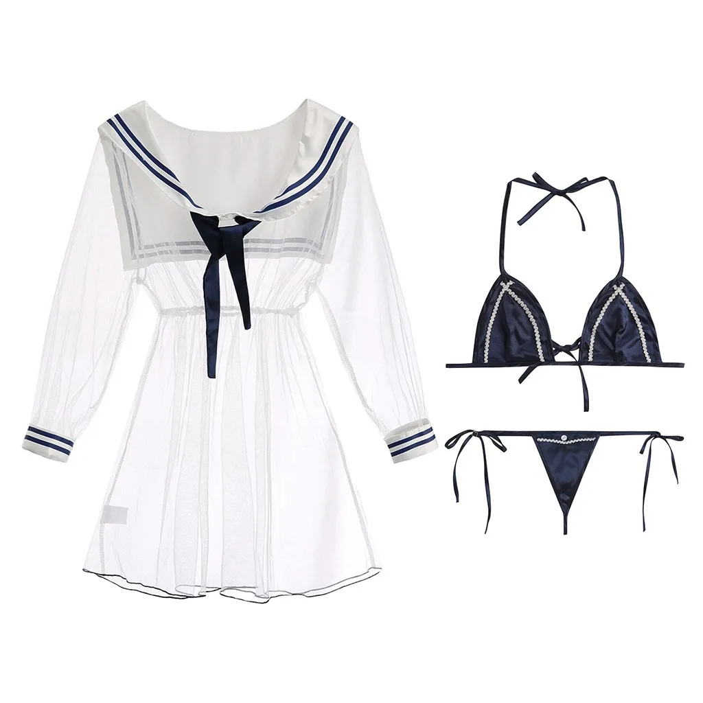 Женский сексуальный сетчатый костюм с принтом, Униформа, комплект нижнего белья