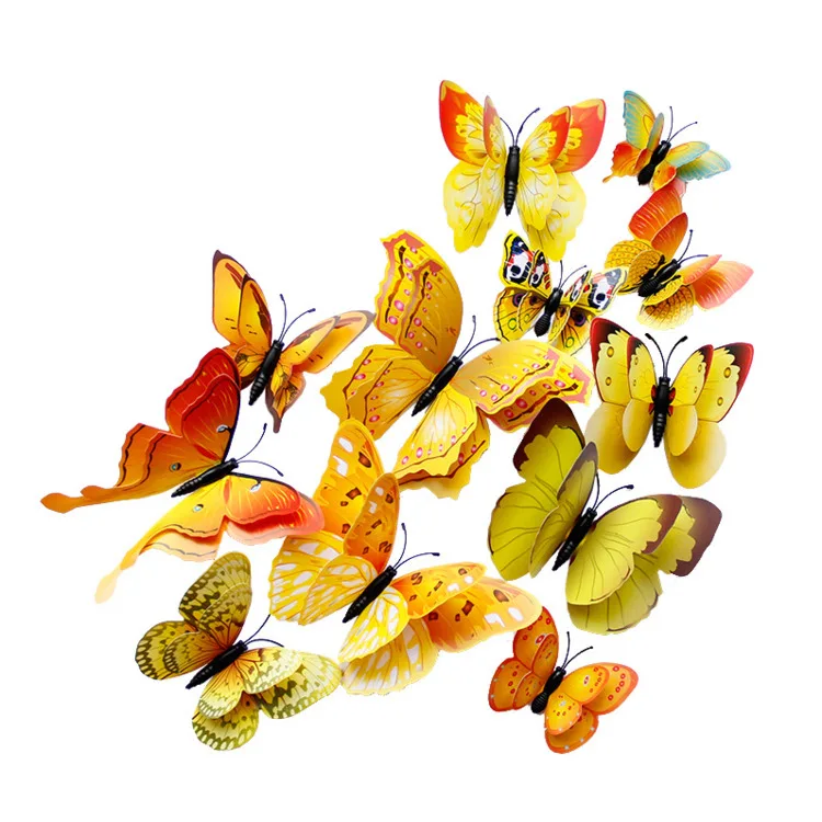 Новое поступление 12 шт ПВХ двухслойные бабочки 3D настенные Стикеры для дома декоративный магнит стенка холодильника художественная наклейка Прямая поставка