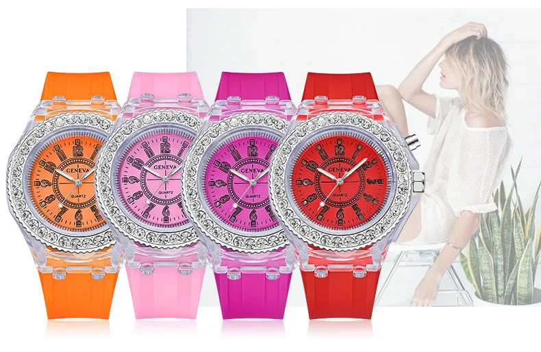 New Women Watches Night Light Quartz Women Wristwatch Silicone Rhinestone Stylish Watch for Women Ladies Watch Relogio Feminino