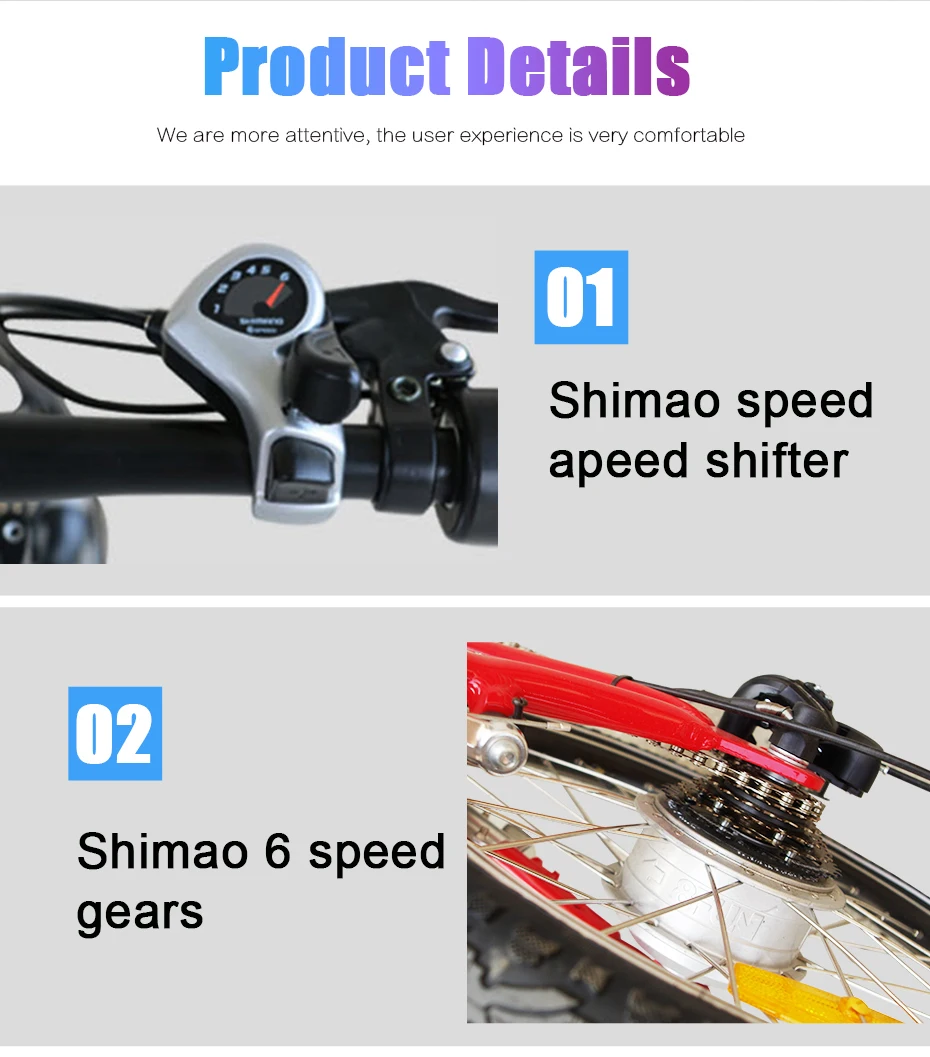 Рама: алюминиевый сплав Режим езды: система помощи педалям (PAS)/дроссельная заслонка/вспомогательная помощь педалей и помощь дроссельной заслонки Мотор: 250 Вт бесщеточный Интеллектуальный мотор-концентратор Батарея: 36V10Ah Литий-ионный аккумулятор Максимальная скорость: 25 км/ч Диапазон заряда: 30-40 км PAS: 1:1 интеллектуальная система педалей Дроссельная заслонка: интеллектуальное управление скоростью дроссельной заслонки Шины: 20''x1.75 шины Тормоза: передние дисковые тормоза/задние V тормоза Переключатель: SHIMANO 6 скоростей Время зарядки: 4-6 ч Входное Напряжение зарядки: 2 А смарт-зарядное устройство, AC110-240V/50-60 Гц Грузоподъемность: 125 кг N. W/G. W: 24/27.5 кг (с батареей) Размер коробки: 155x25x80 см (Д * Ш * В) Загрузка контейнера 84 шт/20GP; 190 шт/40HQ Аксессуары: зарядное устройство, педали, передние и задние фонари, колокол, Наборы инструментов для велосипеда.