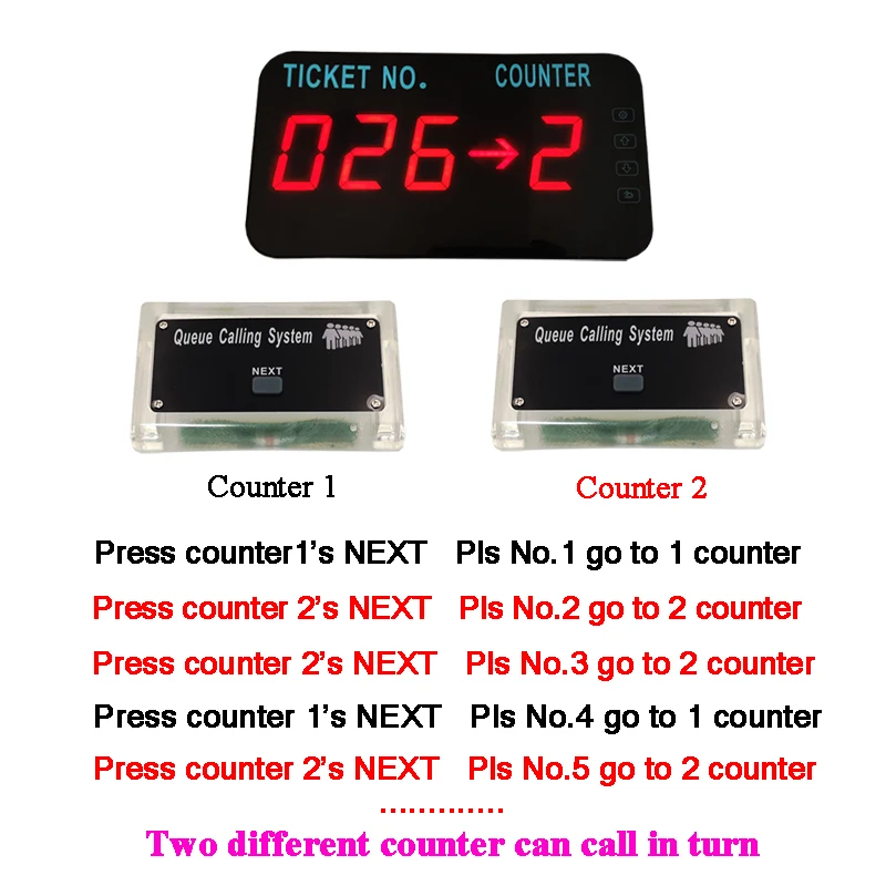 *The guest's number and counter number will show on the display screen, so that they know which counter should attend.