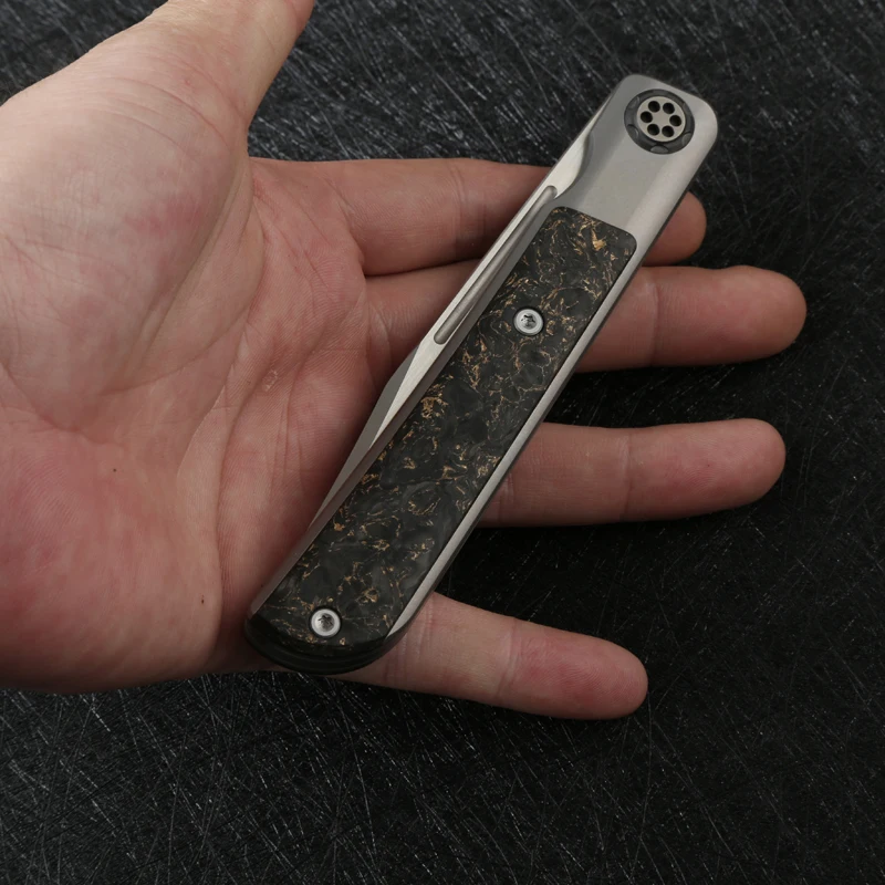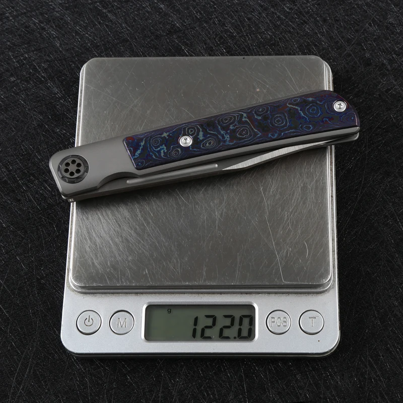 Технические характеристики Общая длина: 8,858 "(225 мм) Длина лезвия: 3,858 "(98 мм) Режущая кромка: 3,740 "(95 мм) Ширина лезвия: 0,787 "(20 мм) (самый широкий) Лезвие Толщина: 0,137 "(3,5 мм) Материал лезвия: S110V(61hrc) Отделка: атлас + проволочный рисунок Длина ручки: 4,724 "(120 мм) Ширина ручки: 0,748 "(19 мм) Толщина ручки: 0,535 "(13,6 мм) Материал ручки: титановый сплав TC4, + пластырь из углеродного волокна + Дамасская пластинка из циркония Вес: 95-122 г Система: KVT керамические бусины
