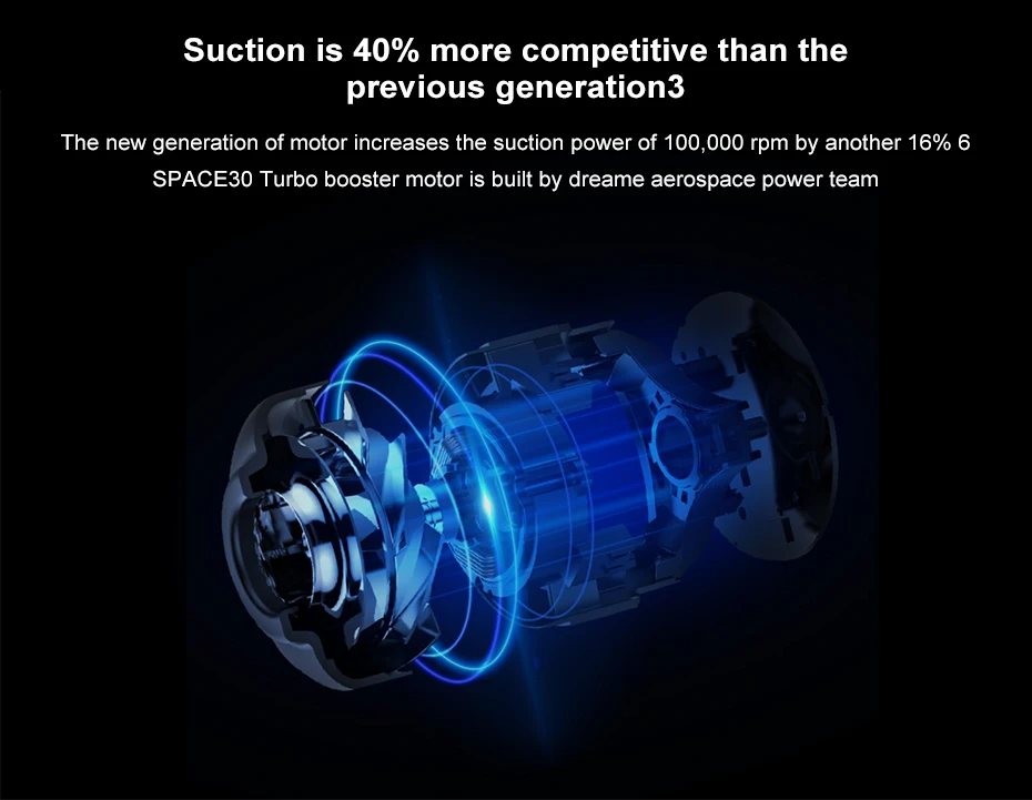 Название продукта: Dreame V10 Boreas Батарея: 2500 мА-ч Вес: 1,5 кг Всасывающий Мощность: 140AW Степень вакуума: до 22KPa Тип: Система фильтрации: пять фильтров Двигатель: пространство 3,0 turbo бесщеточный цифровой мотор Время работы: 60 минут в разделе «стандартный режим"