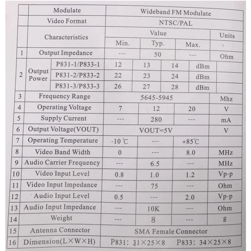 Он поддерживает полный спектр 40 каналов, включая raceband 5645MHz-5945MHz.
