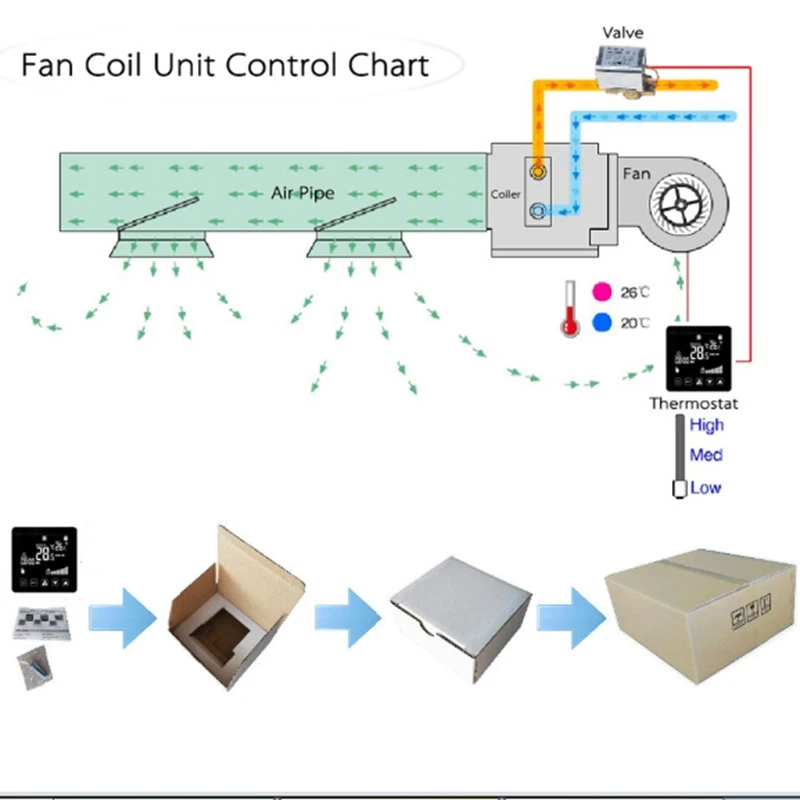 4. Он может определить температуру в помещении и сравнить ее с температурой, установленной пользователем в режиме реального времени, автоматически Отрегулируйте объем впускного воздуха кондиционера и откройте или закройте электрический клапан трубопровода для достижения цели поддержания постоянной температуры в помещении.