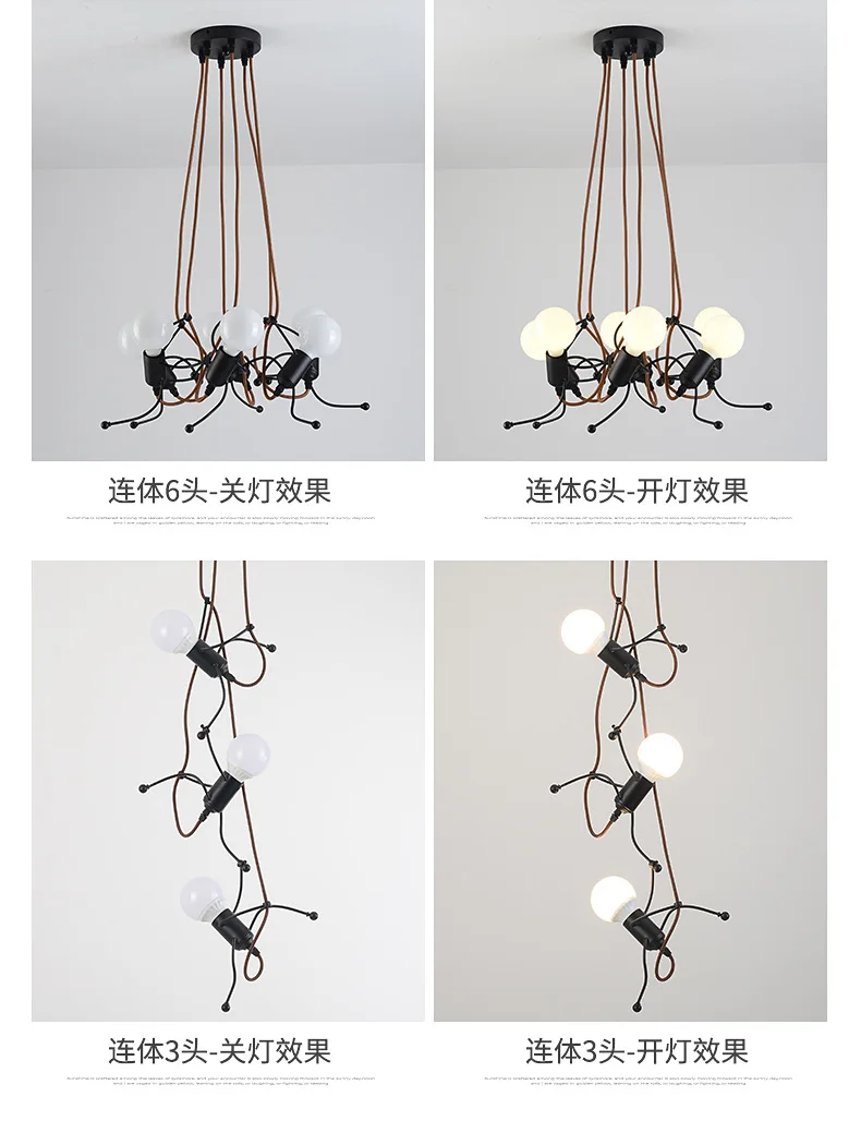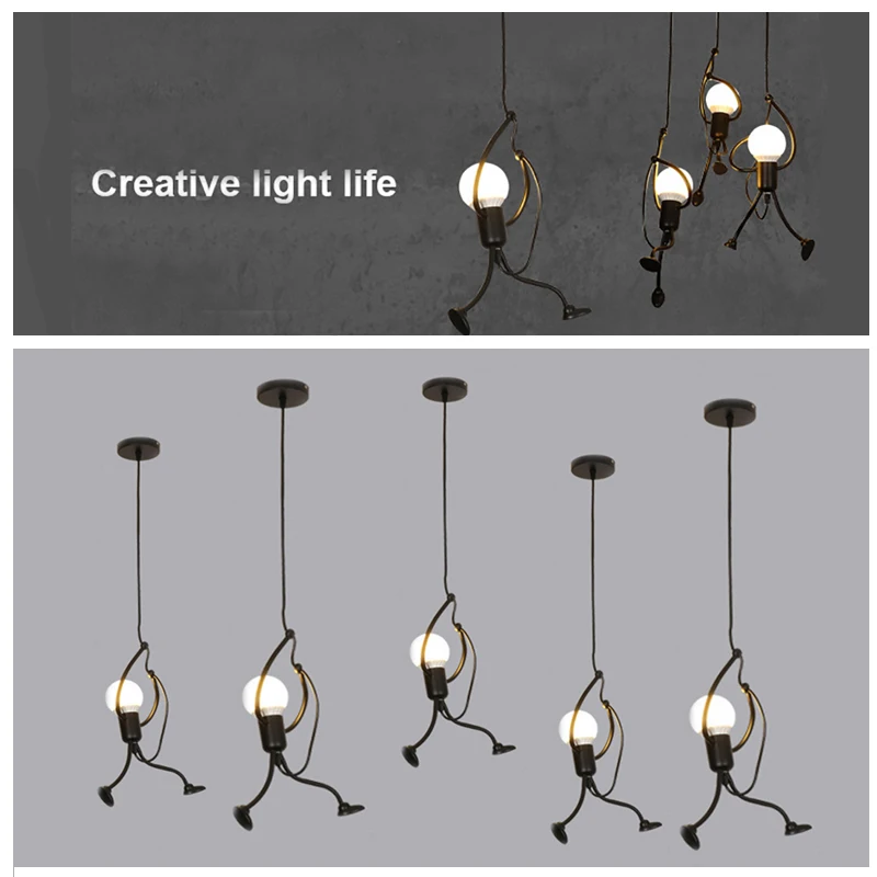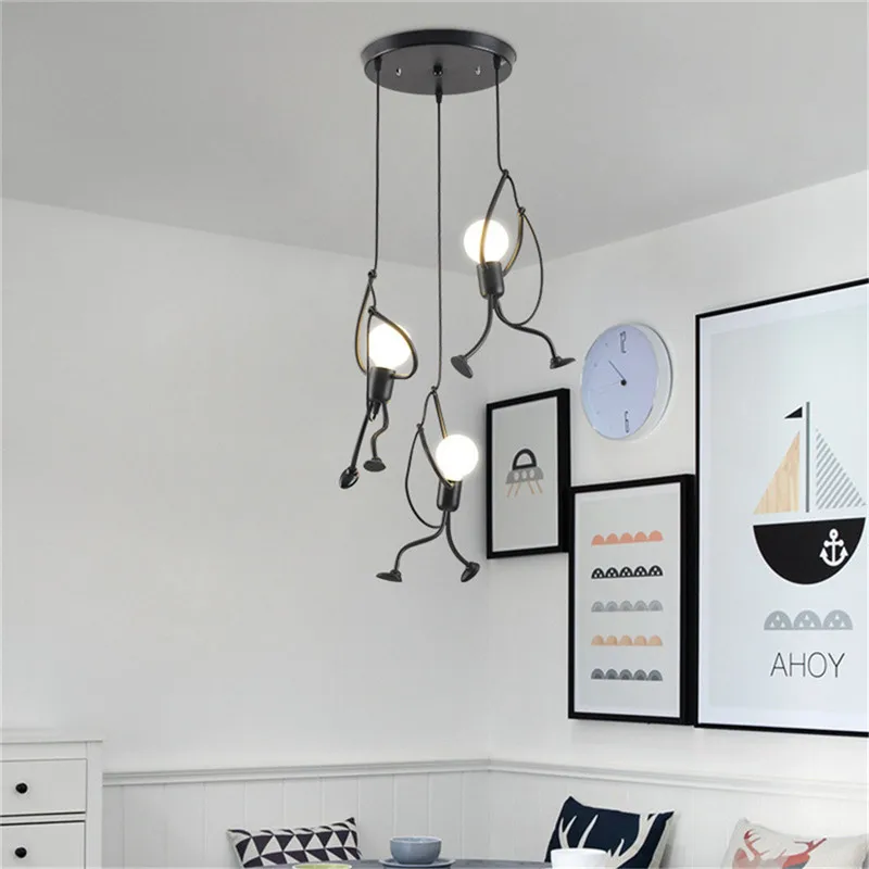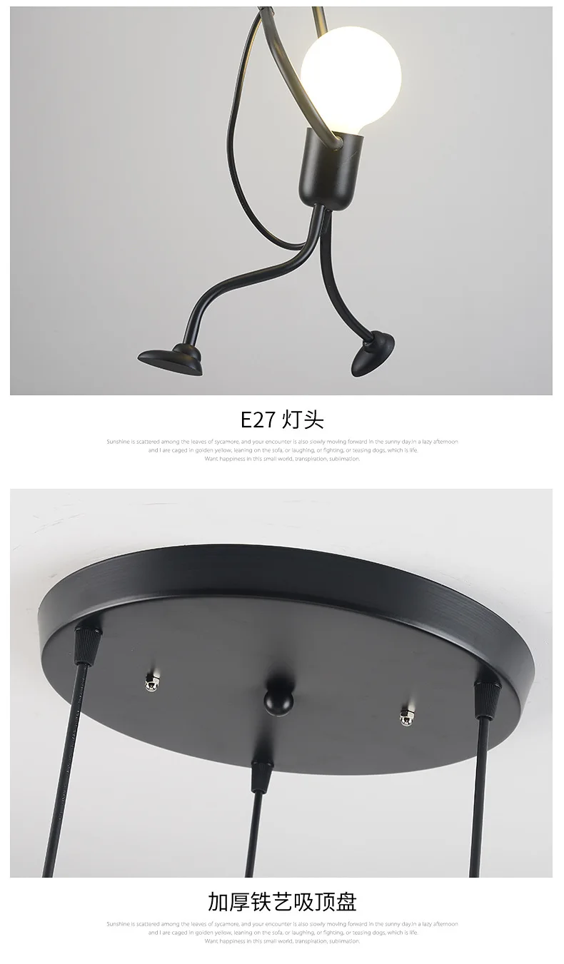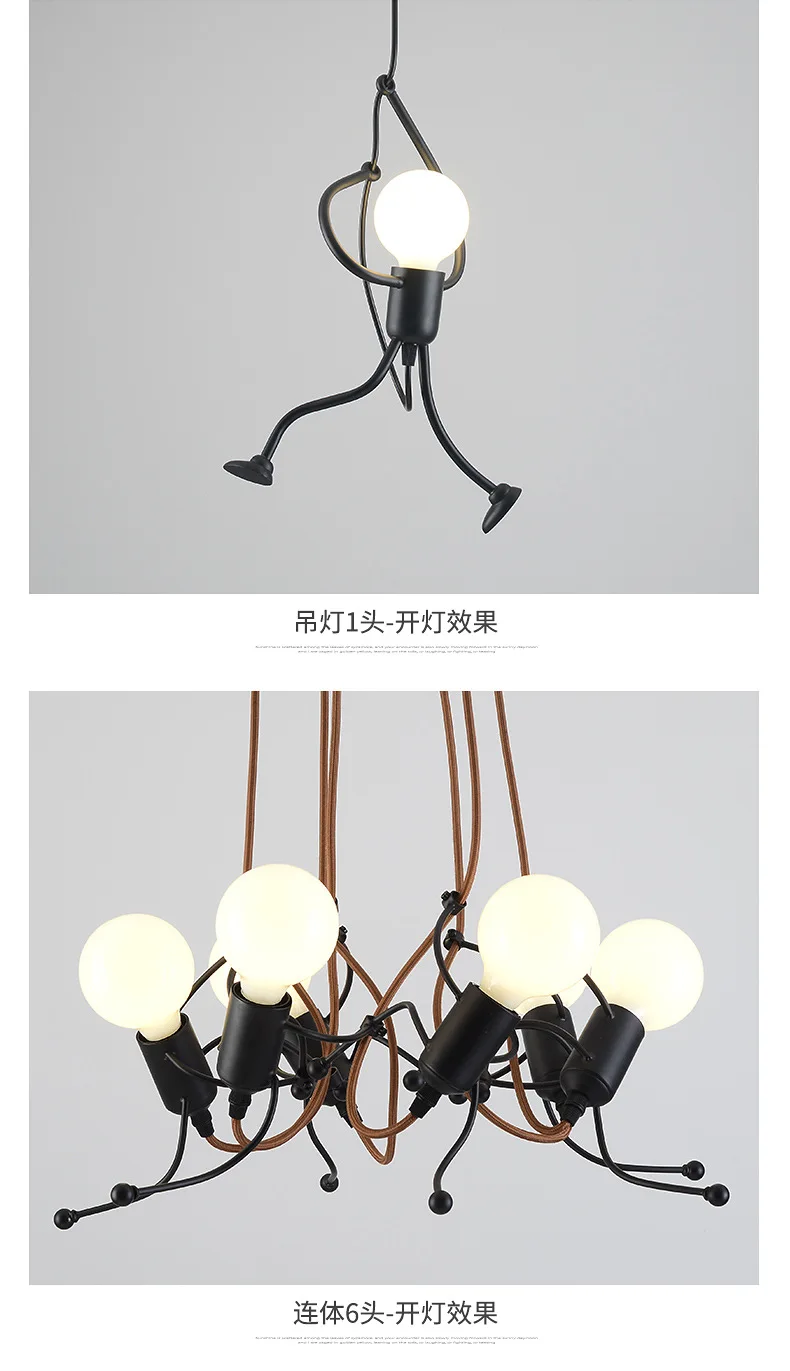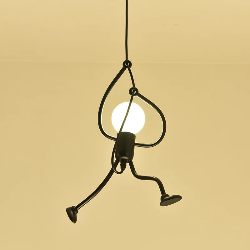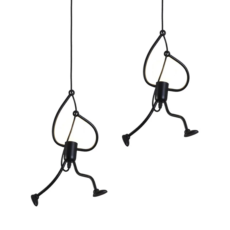 Этот креативный подвесной светильник-отличный подарок для вашей семьи и друзей. Высококачественная Черная мультяшная люстра, как маленький железный человек, который поднимается, это не только освещение, но и искусство украшения.