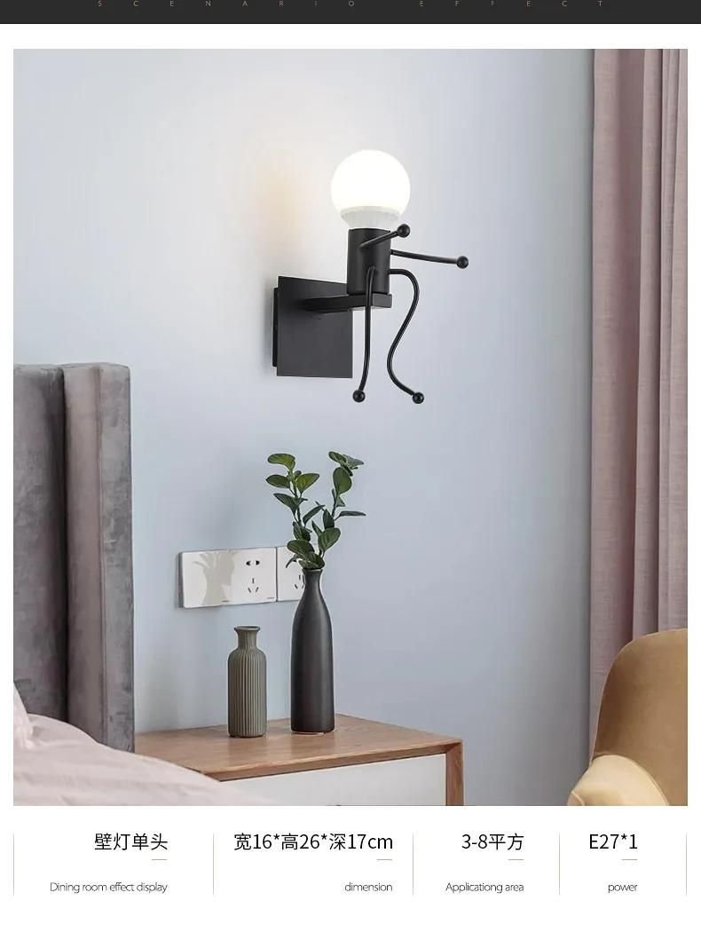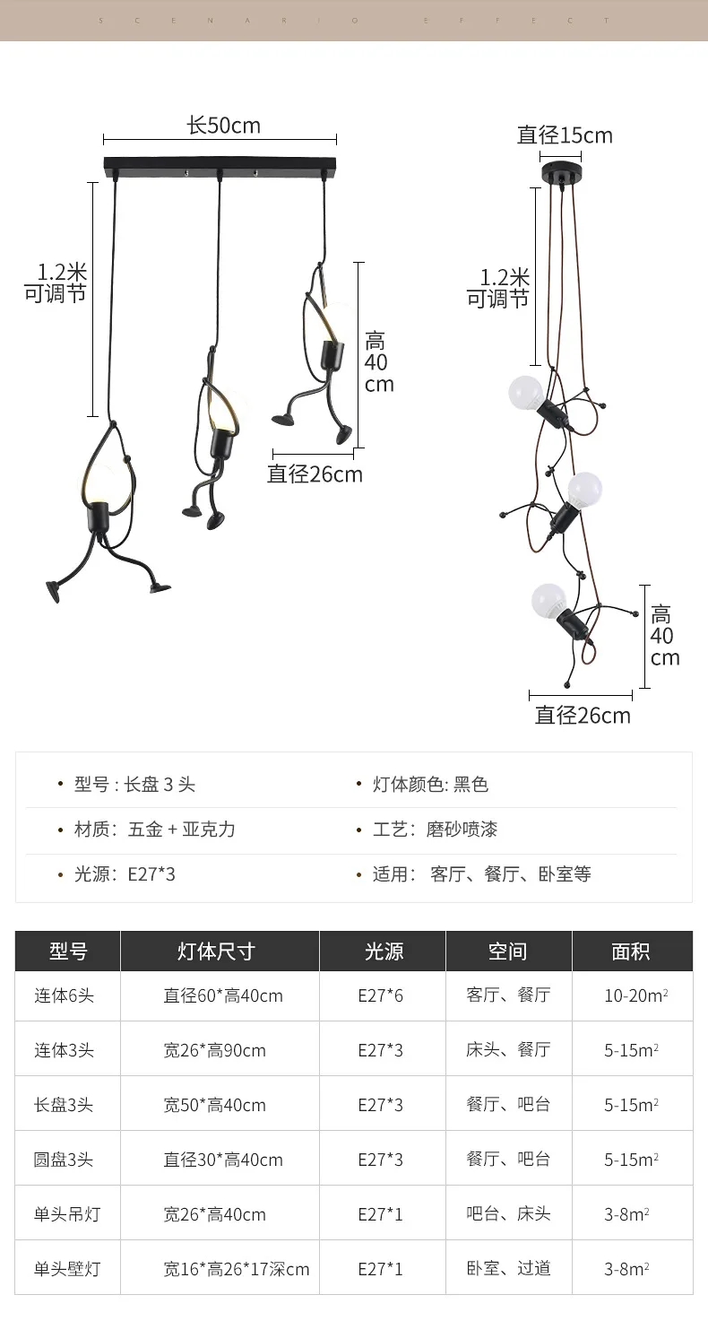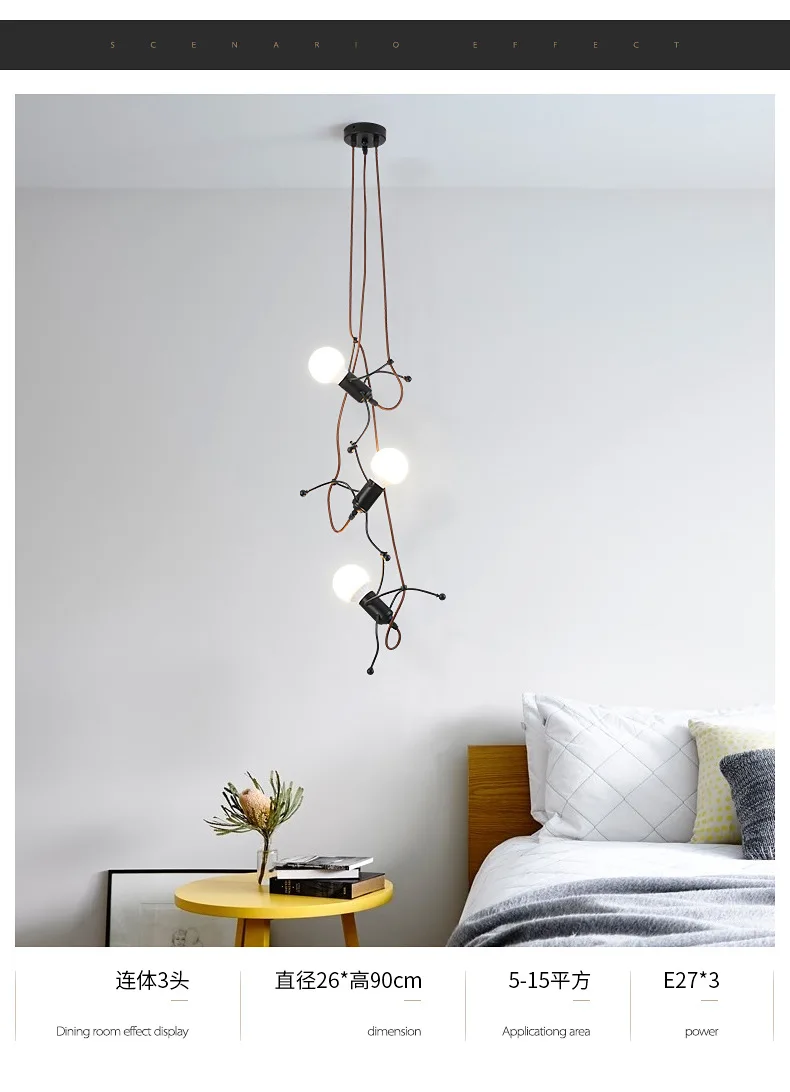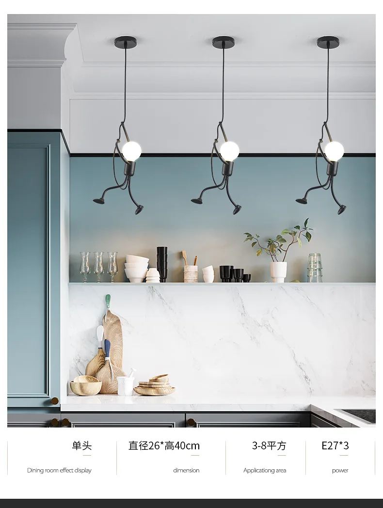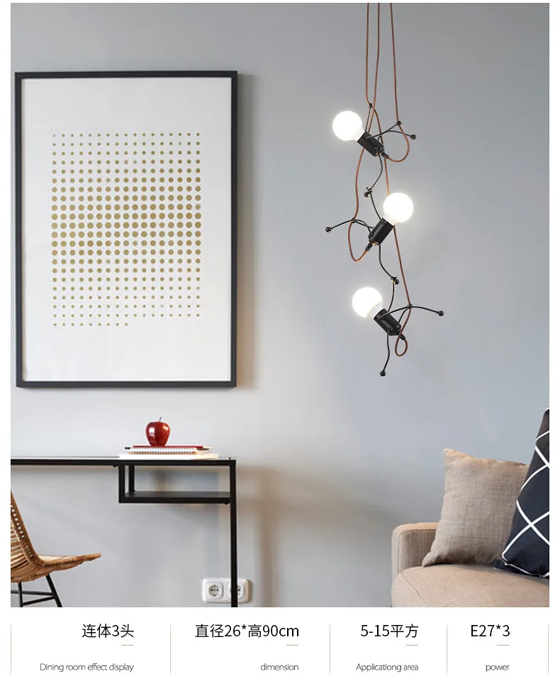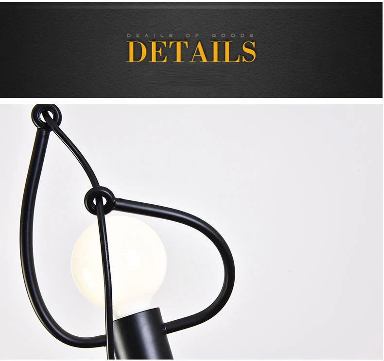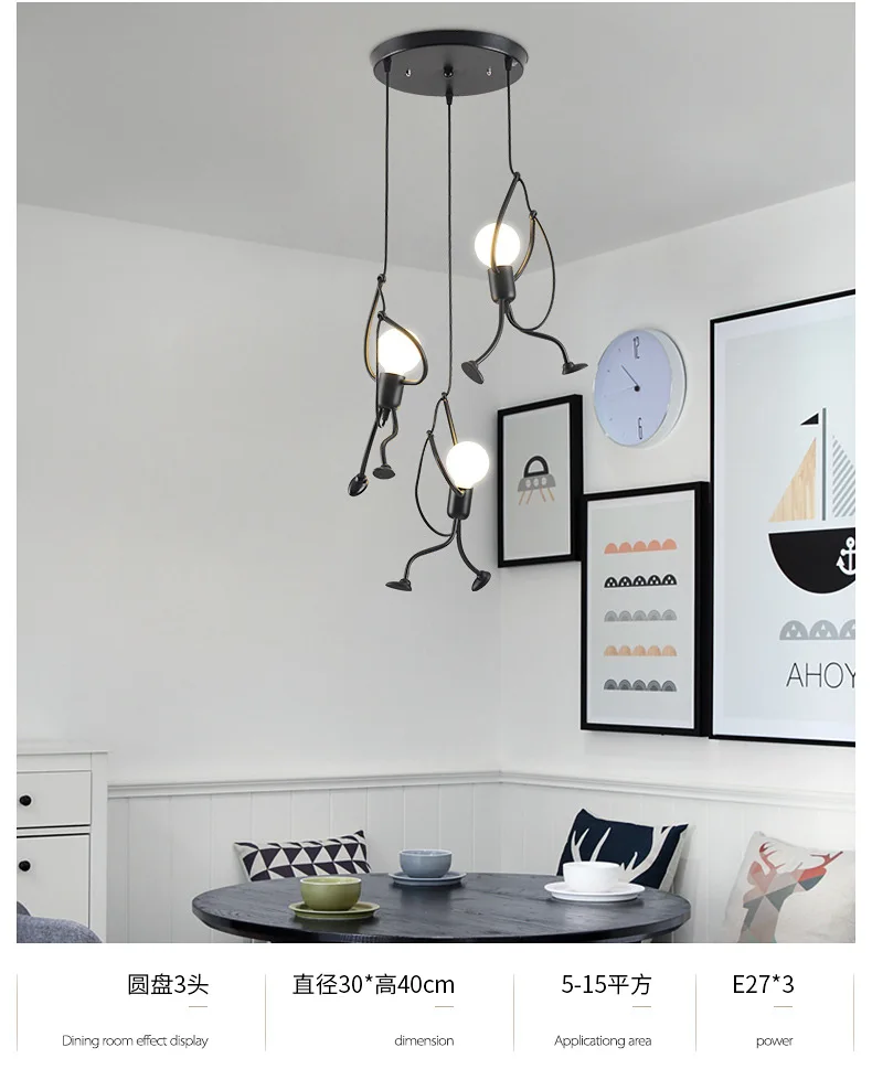 Этот креативный подвесной светильник-отличный подарок для вашей семьи и друзей. Высококачественная Черная мультяшная люстра, как маленький железный человек, который поднимается, это не только освещение, но и искусство украшения.