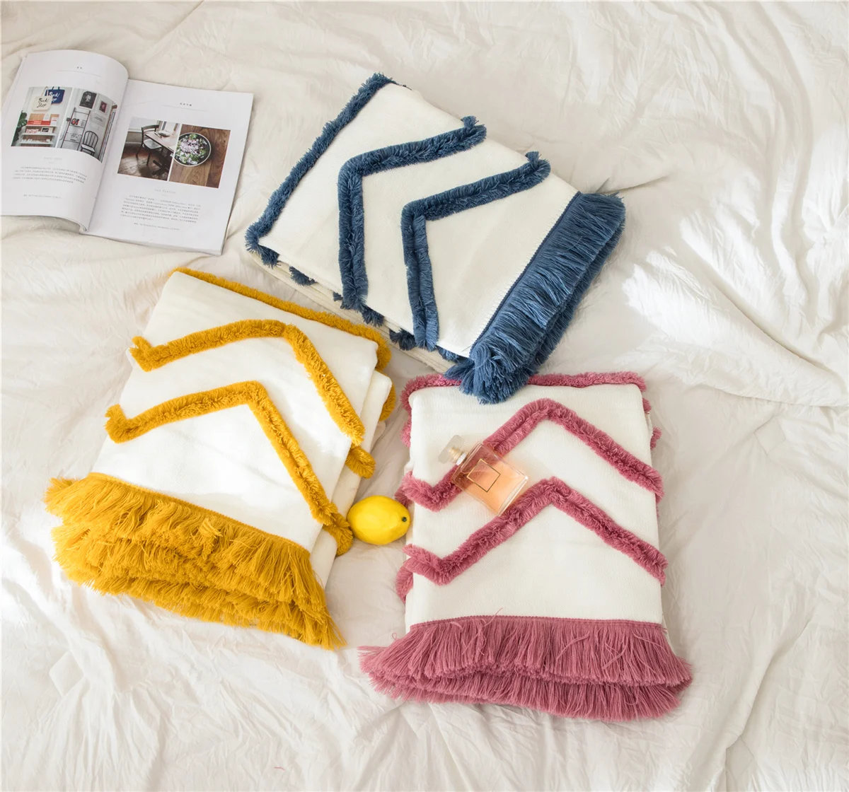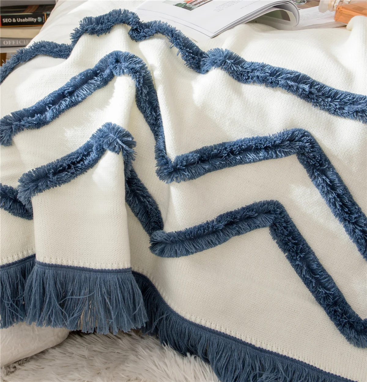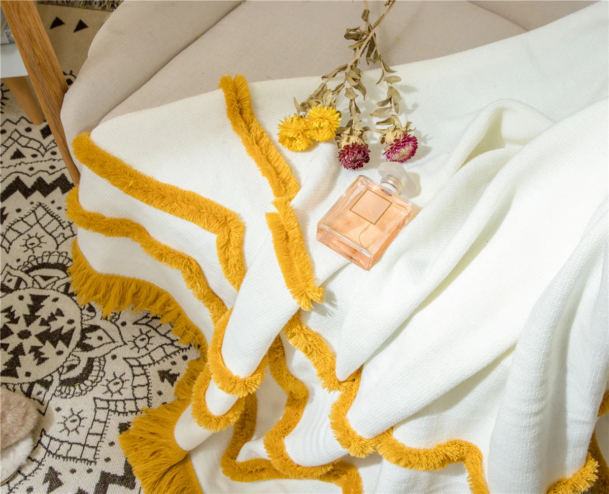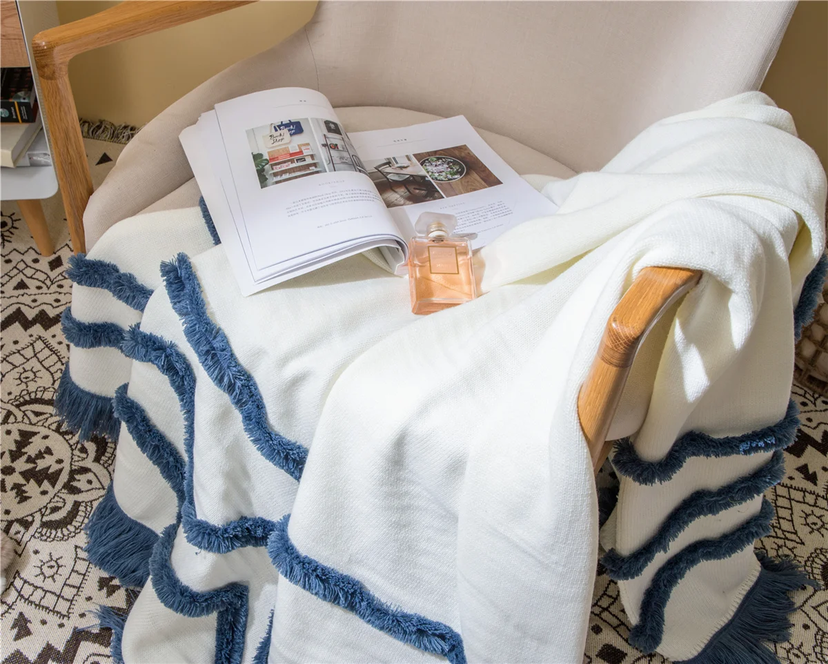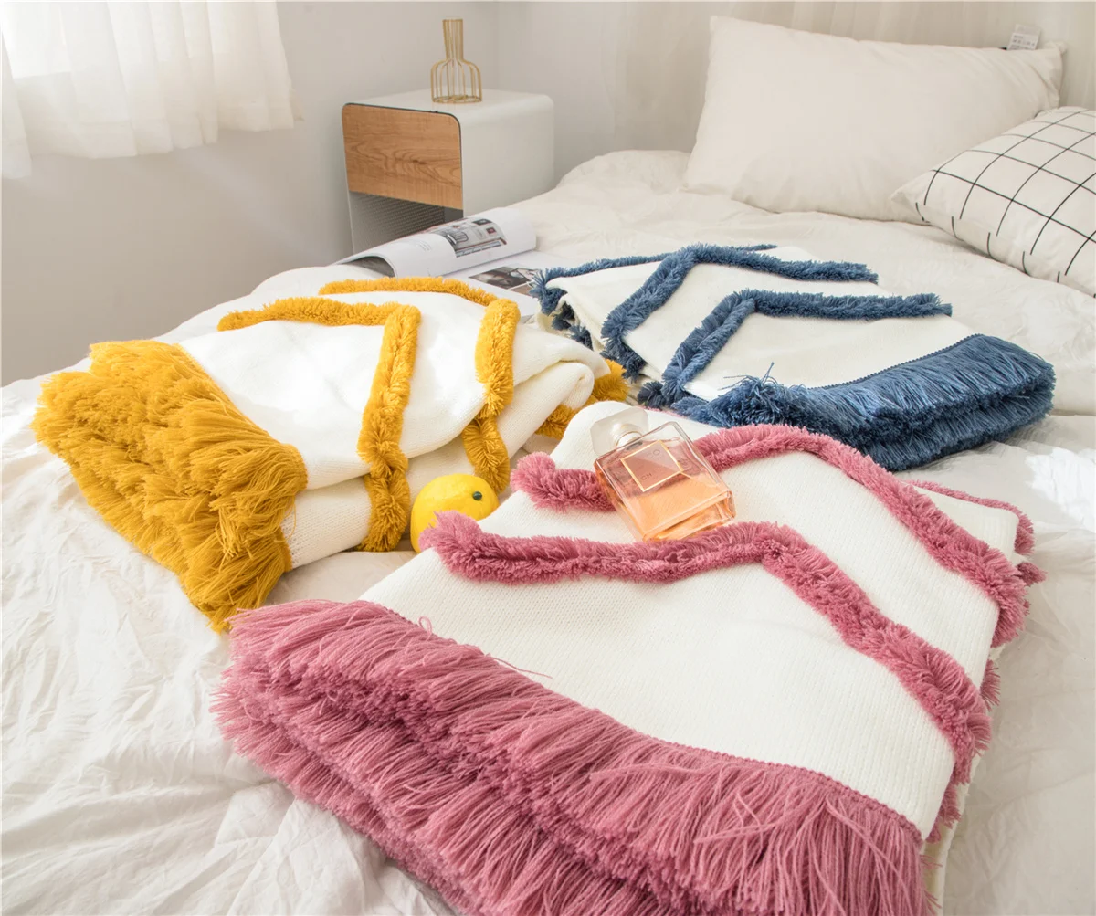 REGINA Pure Hand Knitted Tufted Tassel Design Fashion Bohemian Style Home Decoration Blanket