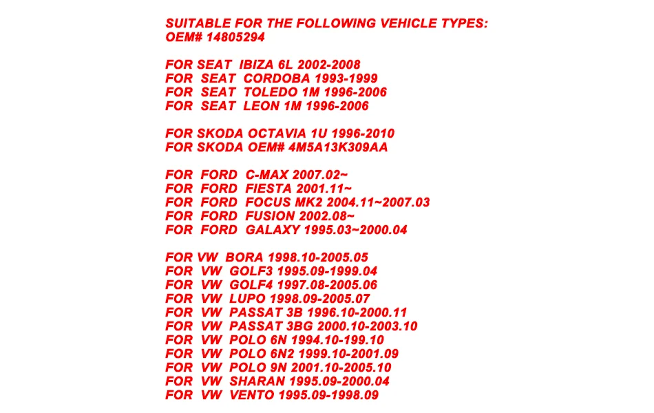 -- Безопаснее в дороге -- Легко установить, подключить и играть -100% новый и высокое качество -- IP 67, водонепроницаемый и ударопрочный Подходит для следующих типов транспортных средств: OEM #14805294 Для SEAT Ibiza 6L 2002-2008 Для SEAT Cordoba 1993-1999 Для SEAT Toledo 1M 1996-2006 Для SEAT Leon 1M 1996-2006 Для Skoda Octavia 1U 1996-2010 Для Skoda OEM # 4M5A13K309AA Для Ford C-Max 2007,02 ~ Для Ford Fiesta 2001,11 ~ Для Ford Focus MK2 2004,11 ~ 2007,03 Для Ford Fusion 2002,08 ~ Для Ford Galaxy 1995,03 ~ 2000,04 Для VW Bora 1998,10-2005,05 Для VW Golf3 1995,09-1999,04 Для VW Golf4 1997,08-2005,06 Для VW Lupo 1998,09-2005,07 Для VW Passat 3B 1996,10-2000,11 Для VW Passat 3BG 2000,10-2003,10 Для VW Polo 6N 1994,10-199,10 Для VW Polo 6N2 1999,10-2001,09 Для VW Polo 9N 2001,10-2005,10 Для VW Sharan 1995,09-2000,04 Для VW Vento 1995,09-1998,09 Посылка включает в себя: 2 шт. боковой маркер светильник указатель поворота светильник