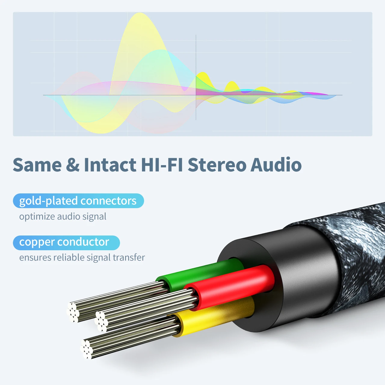 Такой же и неповрежденный Hl-FI стерео аудио Позолоченные разъемы Оптимизации звукового сигнала Медь проводник Обеспечивает надежное передачи сигнала