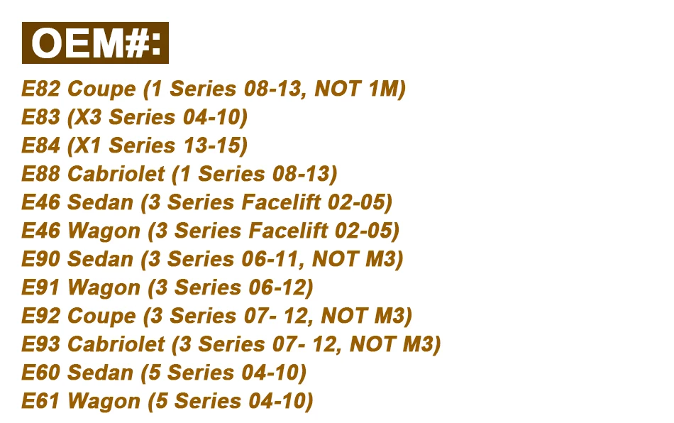 -- Безопаснее в дороге -- Легко установить, подключить и играть -100% новый и высокое качество -- IP 67, водонепроницаемый и ударопрочный Подходит для следующих типов транспортных средств: Для BMW E46 лимузин только для лица 09/2001-04/2005 Для BMW E46 Touring only Facelift 09/2001 -02/2005 Для BMW E36 Limo only Facelift 10/96 Только для BMW E36 Cabriolet Facelift B10/96 Для BMWE36 Compact only Facelift 10/96 Для BMW E36 Coupe 0nly Facelift ab Bj. 10/96 Для BMW E36 Touring only Facelift 10/96 Для BMW E90/E91 лимузин/туринг Для BMW E60/E61 лимузин/туринг Для BMW E81 E82 E87 E88 Для BMW E92/E93 Coupe/ Cabriolet Для BMW X1 E84 X3 E83 X5 E53 Посылка включает в себя: 2 шт. боковой маркер светильник указатель поворота светильник