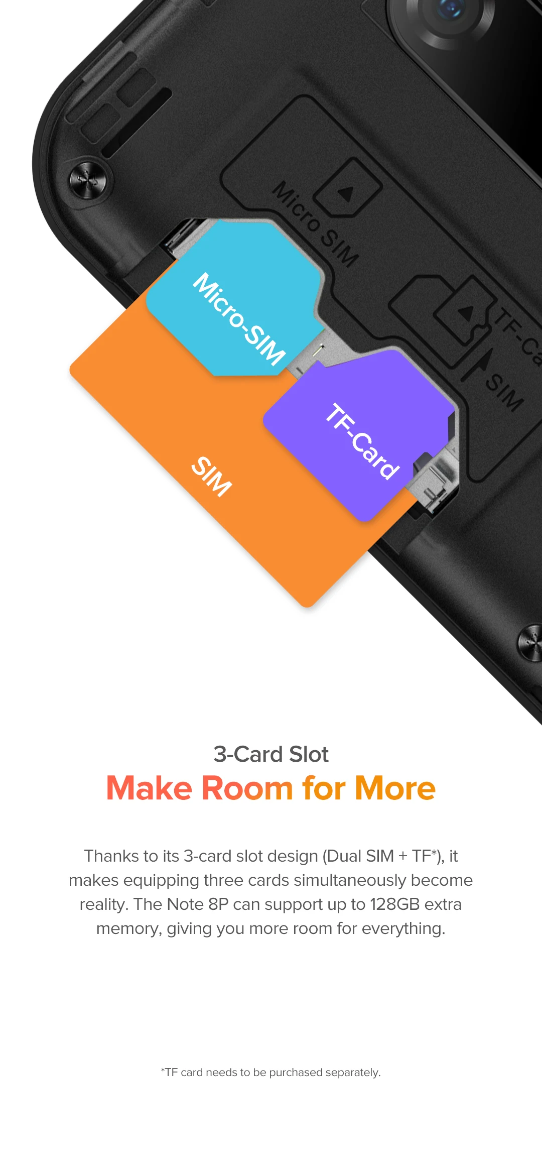 Sim * 1 + Micro sim * 1 + tf-карта * 1 (вы можете использовать три карты одновременно)