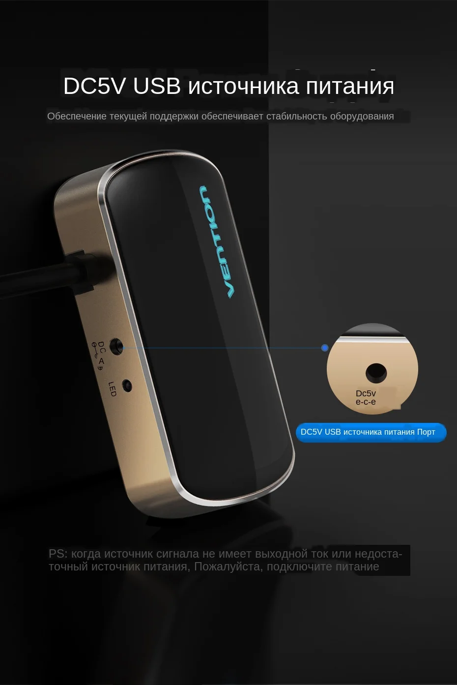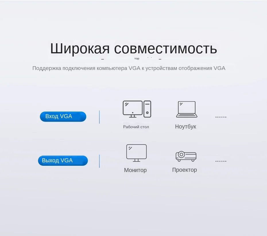 3. Пожалуйста, используйте кабель Micro USB (входит в комплект) для питания, а также кабель VGA длиной 1 м входит в комплект для удобства использования.