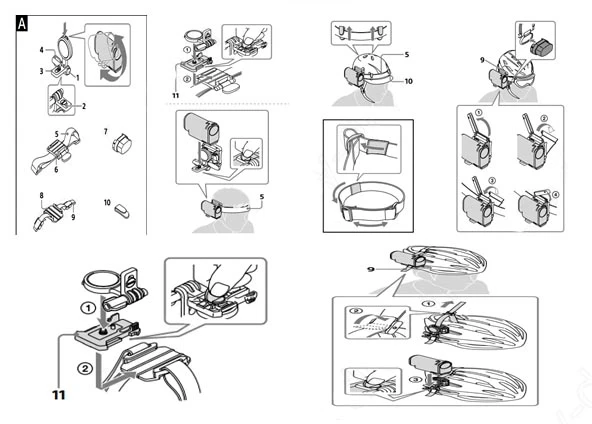 -Установите экшн-камеру на Универсальное крепление на голову либо в каркасный чехол, когда вы хотите контролировать угол съемки или подводный корпус, когда находитесь в снегу или воде