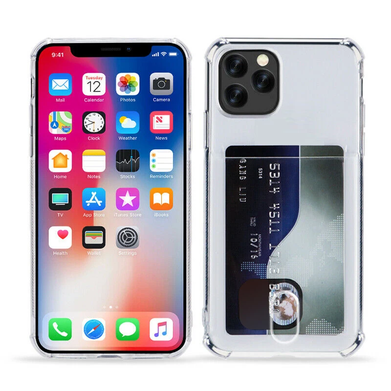 Прозрачный противоударный чехол для iPhone 11 Pro Max XS XR 7 8 6S с отделением для карт