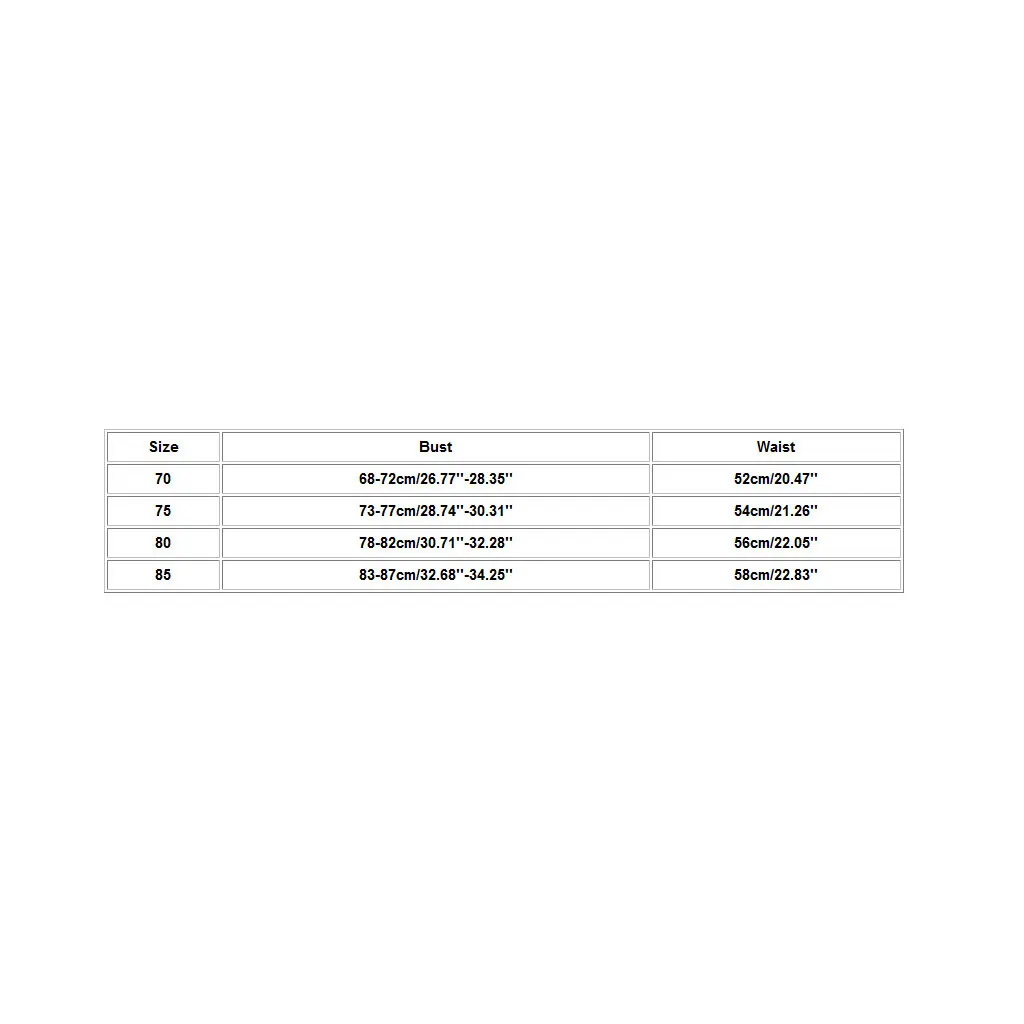 Что вы получаете: 1 комплект для женщин Сексуальное нижнее бельеРазмеры Обхват груди Обхват талии 70 68-72 см/26,77 ''-28,35'' 52 см/20,47'' 75 73-77 см/28,74 ''-30,31'' 54 см/21,26'' 80 78-82 см/30,71 ''-32,28'' 56 см/22,05'' 85 83-87 см/32,68 ''-34,25'' 58 см/22,83''
