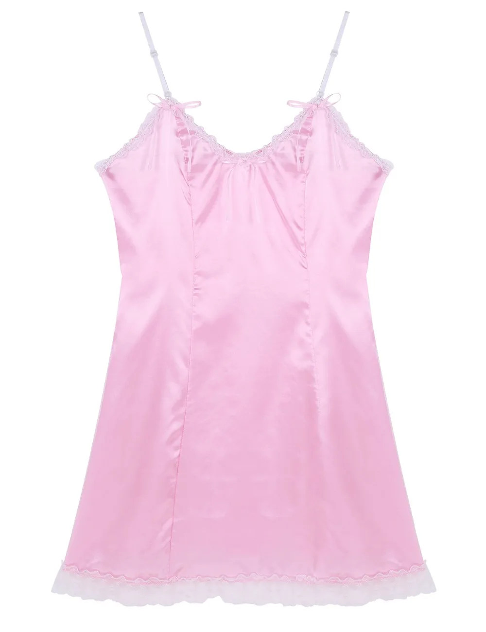 Регулируемые бретельки на бретельках, v-образный вырез и низкая спинка, с оборками и кружевной каймой.