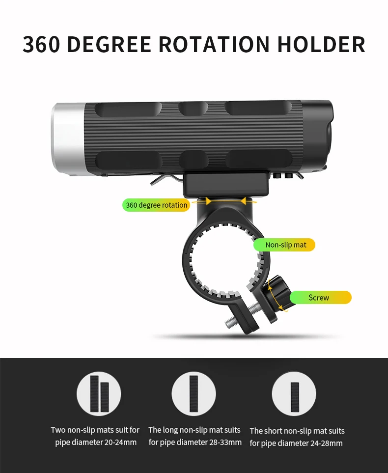 Название: велосипедный светильник BC20 Бусины лампы: 2 * L2 светодиодный + COB боковой светильник Дизайн: светодиодный экран, магнит Материал корпуса: алюминиевый сплав Кронштейн: держатель с вращением на 360 градусов Боковой светильник: белый/красный/синий три стробоскопа светильник Вход/выход: 5 В/1 А Емкость аккумулятора: 5200 мАч Водонепроницаемый: IPX5 Режим: 3 режима