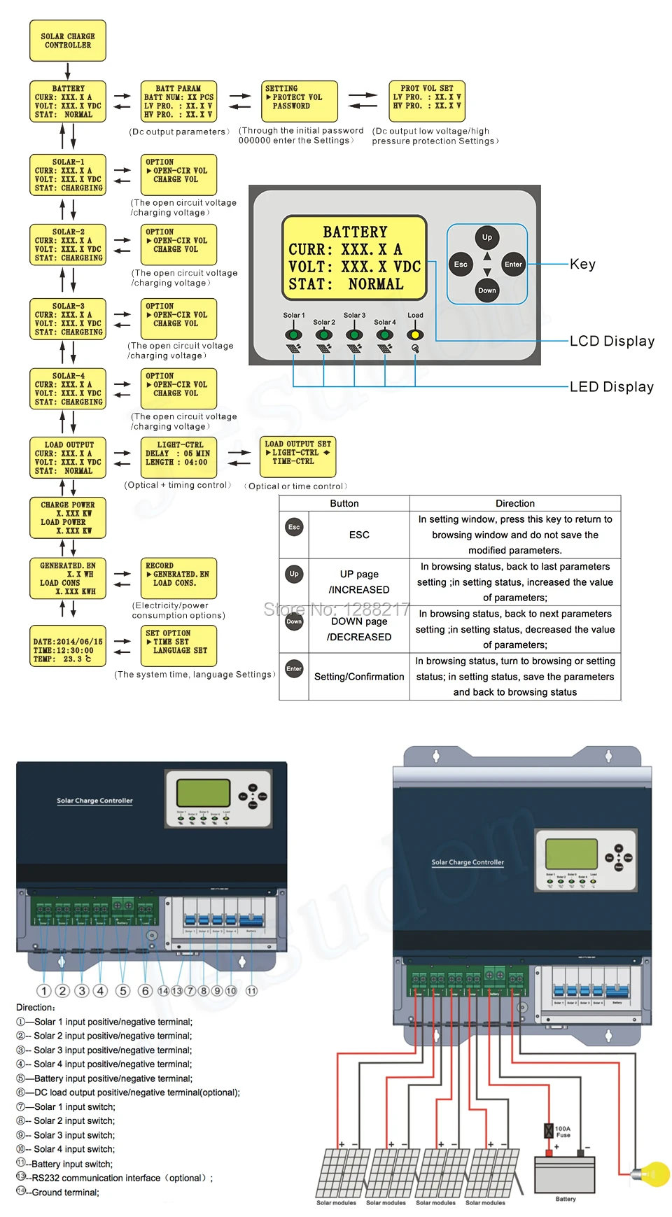 50A75A100A Настенный Солнечный контроллер DC 192V220V240V288V384V ШИМ солнечное зарядное устройство с 2/3/4 цепями PV вход
