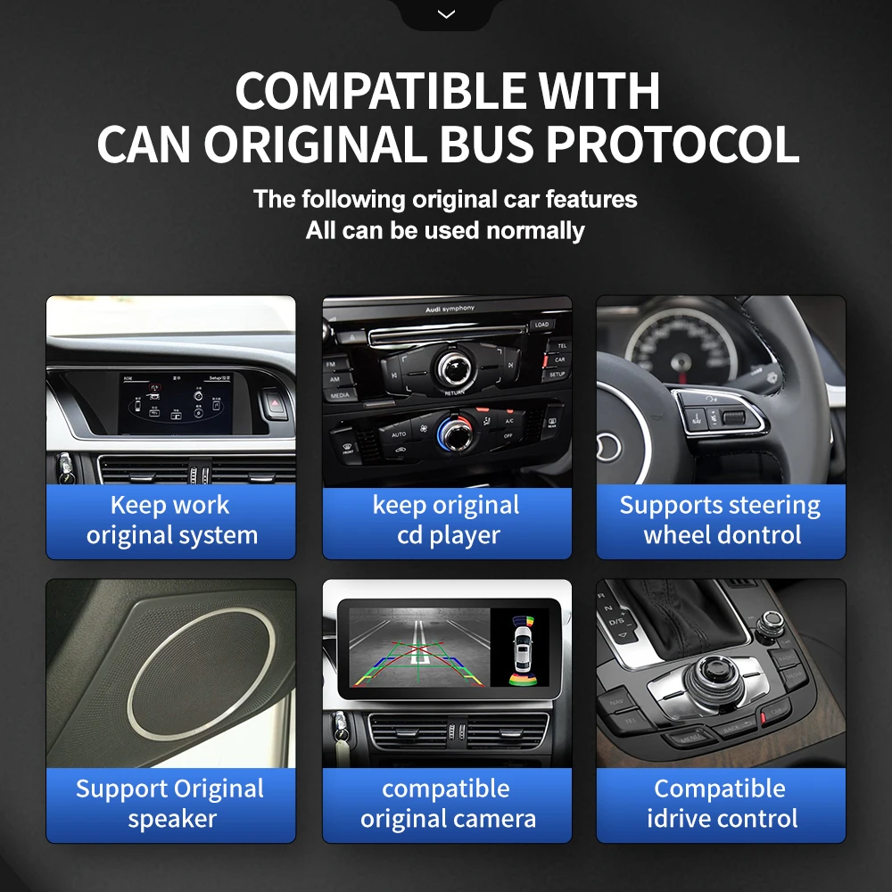 Audi A4 B8 A5 2009-2016 правый ПриводАвтомобиль должен иметь функцию AUX или AMIСовместимое автомобильное головное устройство: Audi Concernt / Sypphony и Audi MultimediaНе совместим с автомобильным головным устройством-Audi Chrous Radio / CD Changer