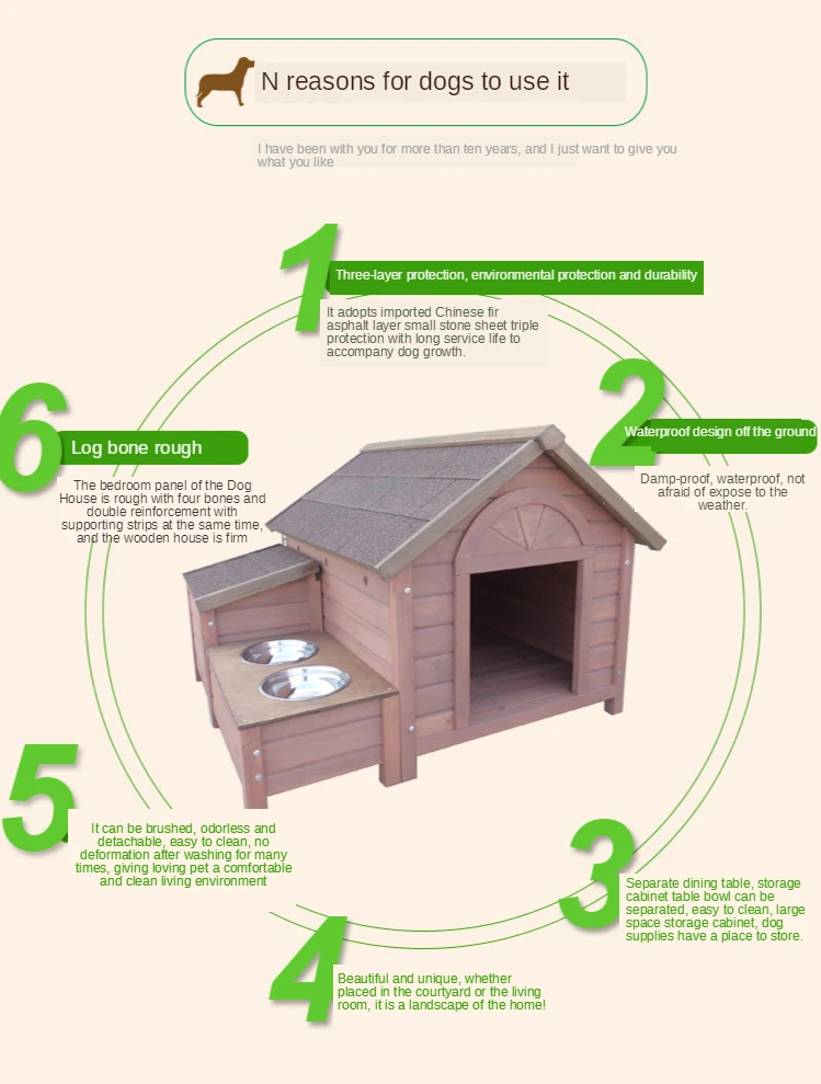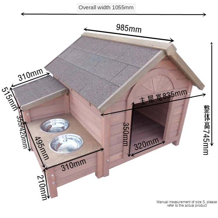 Название: большая уличная собачья Конура из массива дерева Основной материал: Китайская ель Покрытие: наружная краска для защиты окружающей среды на водной основе + антикоррозийная обработка Есть три модели продуктов SML: Размер S: 985*1055*945 мм Размер упаковки: 1020*915*150 мм 27кг Размер М: 1090*1170*835 мм Размер упаковки: 1115*1080*135 мм 35 кг Размер L: 1150*1320*1050 Размер упаковки: 1320*910*185 мм 43 кг