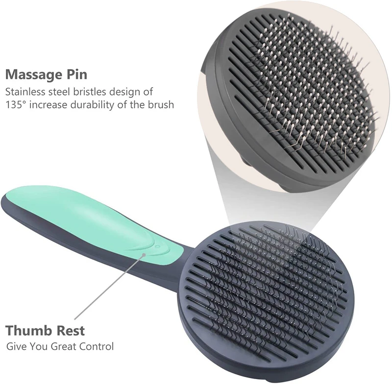 【Quick выпуск кнопки 】Щётка-прорезыватель оснащена кнопкой самоочистки, которая мгновенно высвобождается из мертвой шерсти без необходимости вытягивать ее, ее очень легко чистить.