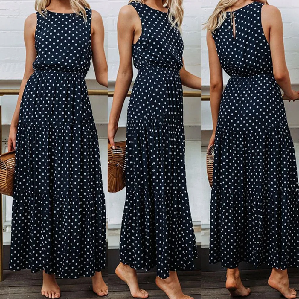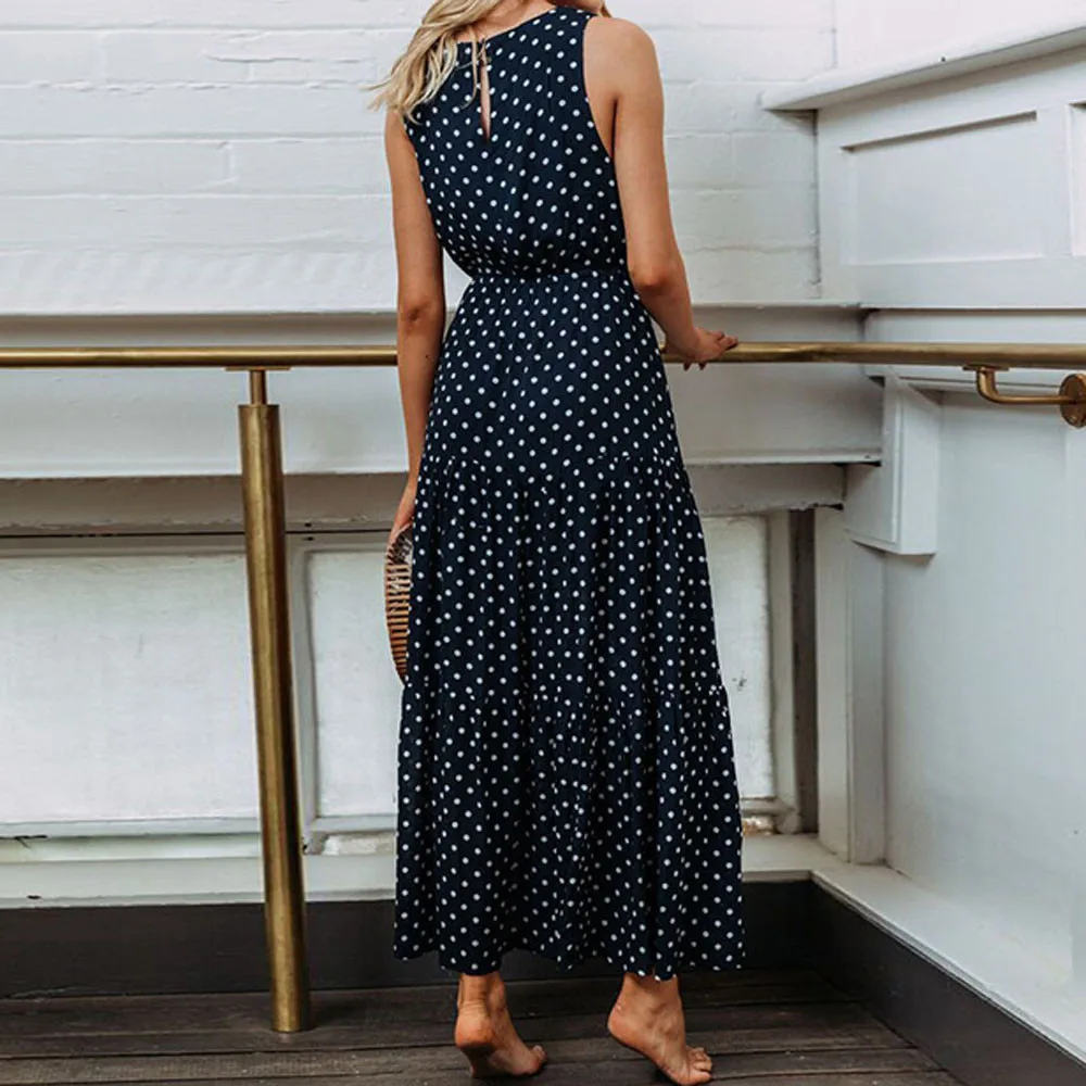 Женская круглая печать в горошек Длинное вечернее платье без рукавов с вырезом
