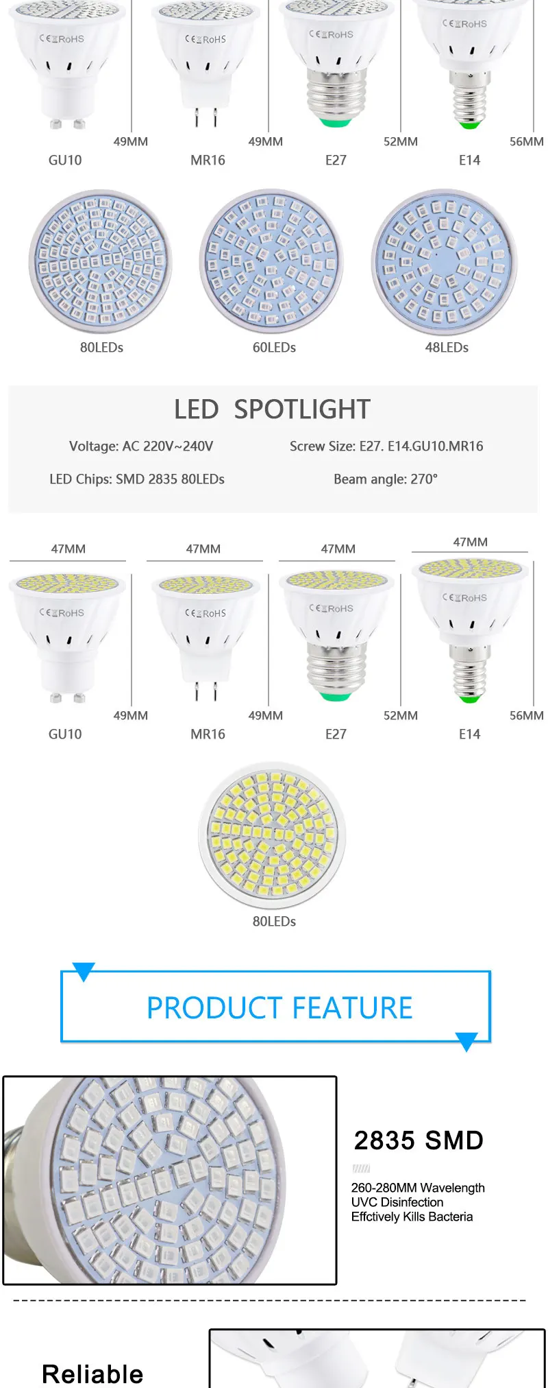 Светодиодный УФ бактерицидные лампы светильник GU10 E27 MR16 E14 5W 7W УФ-дезинфекцией Светодиодный точечный светодиодный стерилизатор лампа 2835SMD 220V ультрафиолетовый светодиодный светильник B22
