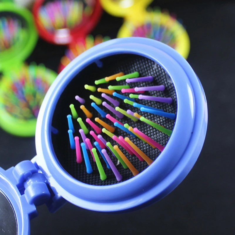 Складная расческа, портативная круглая карманная Мини Круглая Складная Расческа с зеркалом, Массажная щетка для волос, инструменты для укладки радуги