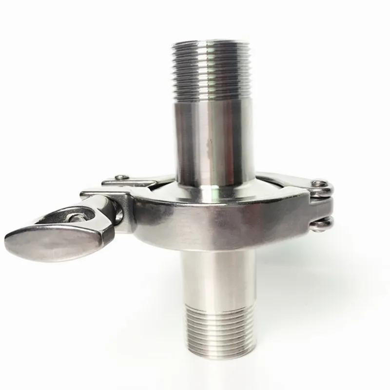 Особенности: Абсолютно новый Материал корпуса: нержавеющая сталь 304 Высокое давление прочный Резьба трубы: BSPT Посылка включает в себя: 2 шт. санитарный мужской резьбовой наконечник трубы фитинг + Tri Зажим + PTFE прокладка