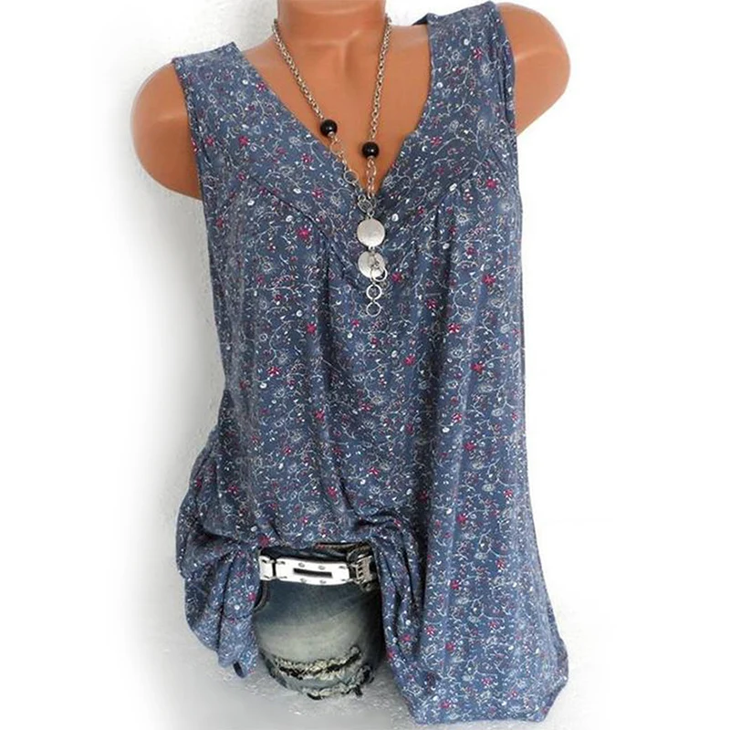 2.Тип одежды: женские цветочные топы без рукавов размера плюс с v-образным вырезом и бретельками, летние модные свободные рубашки без рукавов