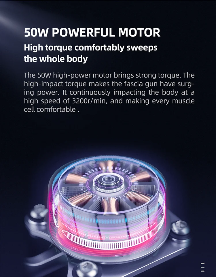 4. Используйте 60 Вт Мощный и большой крутящий момент двигателя. Дайте самую сильную мощность массажному пистолету