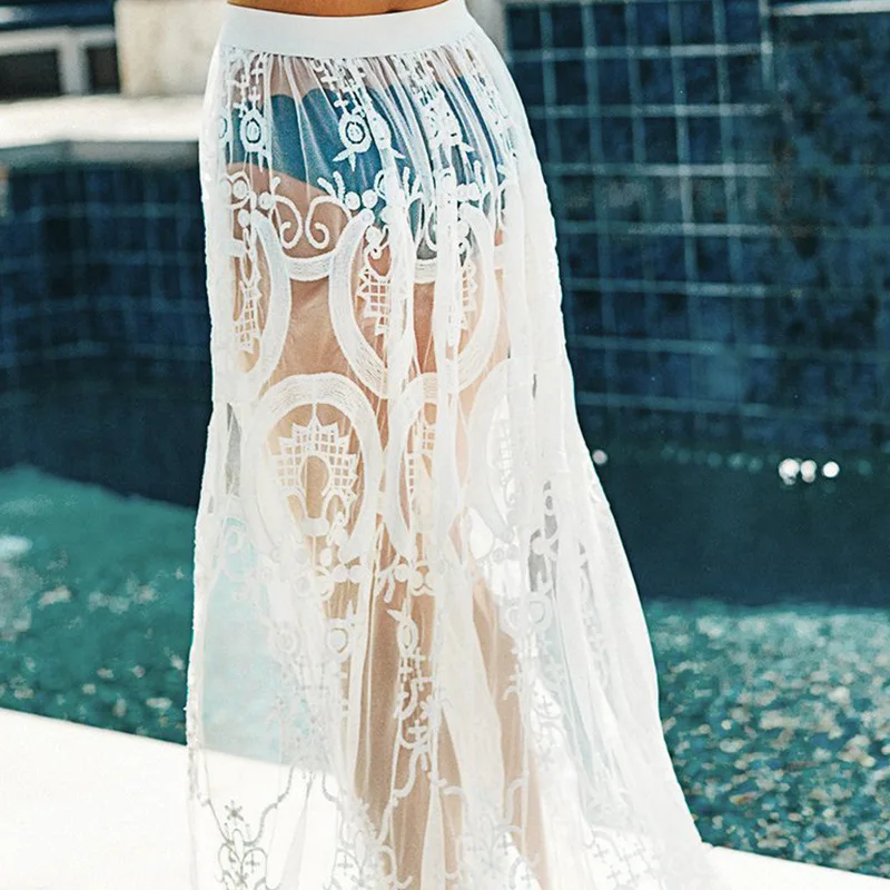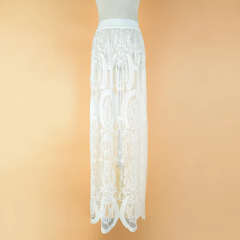 Выделитесь из толпы в белой кружевной юбке с высоким разрезом. Эта уникальная юбка имеет кокетливые бедра-высокие разрезы на каждой стороне и эластичный пояс.