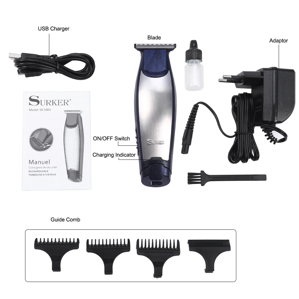 Этот продукт принимает титановый параллельный дизайн ножа, который является острым, чтобы обрезать без остатка. Ультра-тихий дизайн дает вам спокойное пространство, и три направляющих гребня могут легко отрегулировать расчески до нужной высоты для вас, чтобы отрезать. Кроме способа зарядки постоянного тока, также имеет портативную зарядку USB, очень удобную в использовании. Такие замечательные товары, просто Принесите их домой!