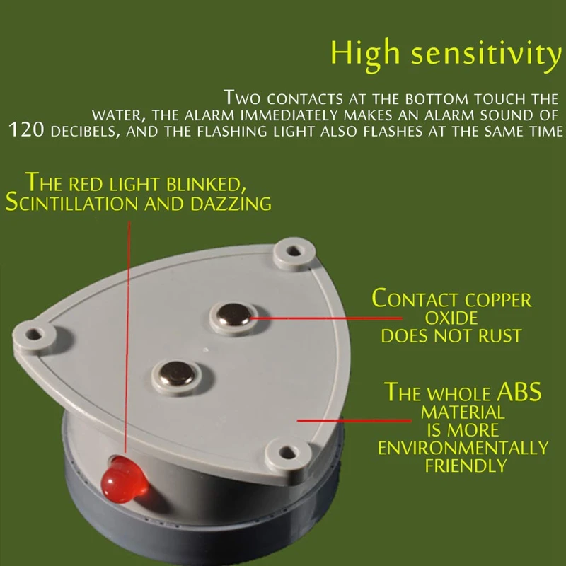 Высокая чувствительность: Есть два нажатия на воду внизу, будильник сразу же издаст сигнал тревоги, до 110 децибел, весь дом может слышать 110 децибел, И мигает одновременно.