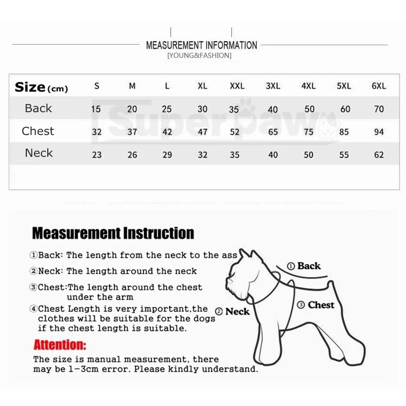 2. Для двух ног, пожалуйста, обратите внимание на обхват груди, и для четырех ног, должны соответствовать обхвату груди и длине спины.