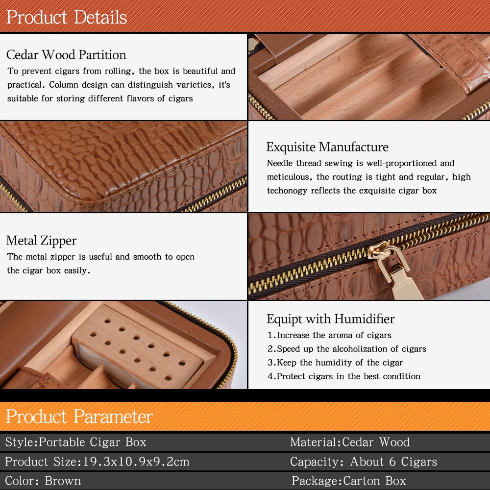 VOLENX кожаная коробка для сигар с увлажнителем Классический чехол для сигар Humidor изысканный чехол для сигар ручной работы вмещает 6 пальцев