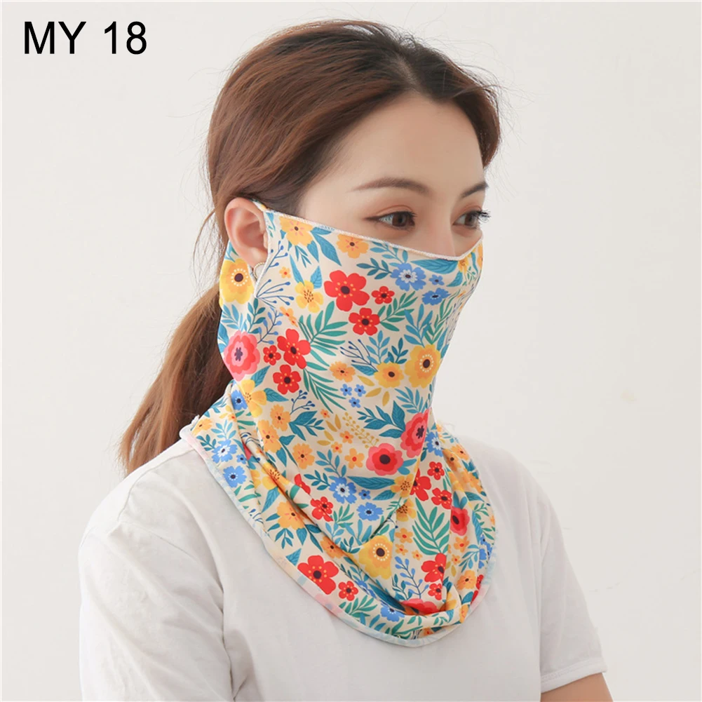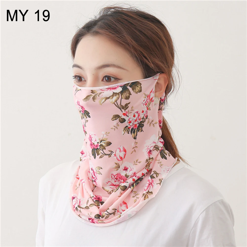 Женский шарф для велоспорта с цветочным принтом и сердечком из ледяного шелка с защитой от ультрафиолета и пылезащитным покрытием