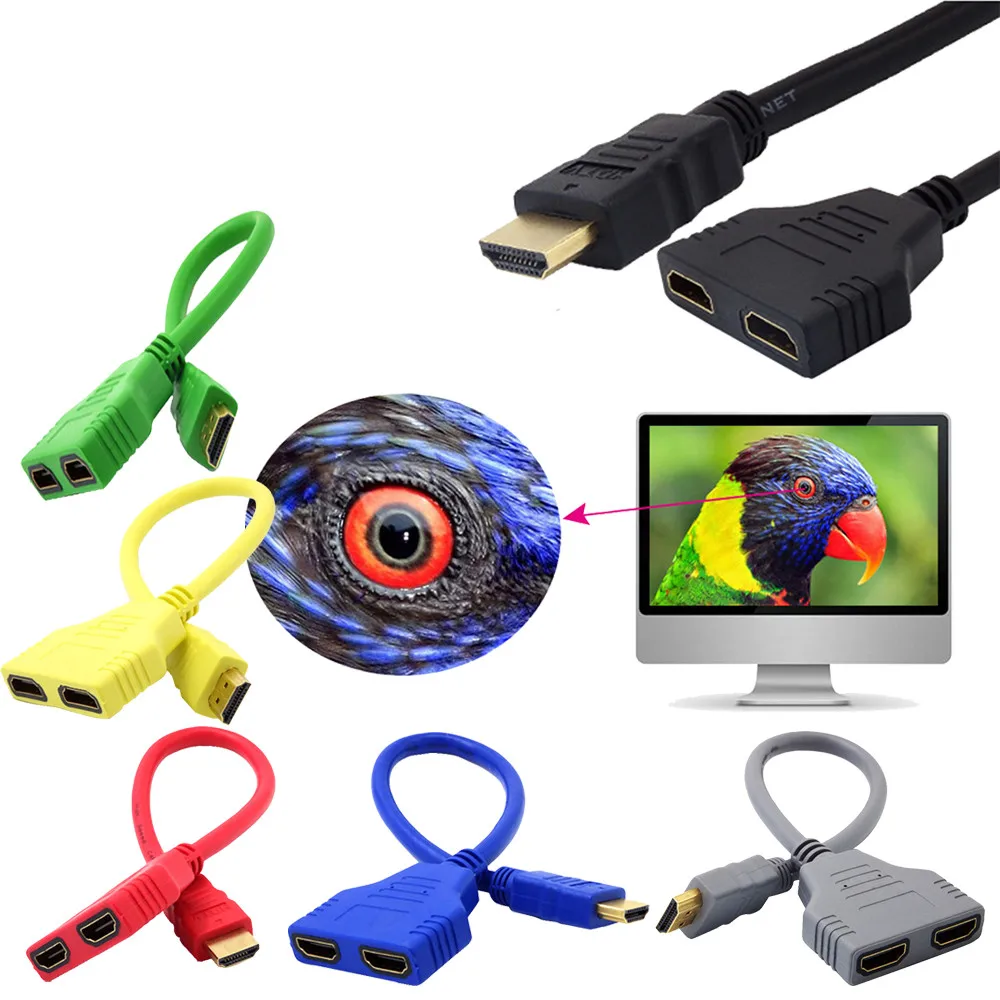 HDMI 1-2 Сплит двойной адаптер сигнала конвертировать Кабель для видео ТВ HD TV