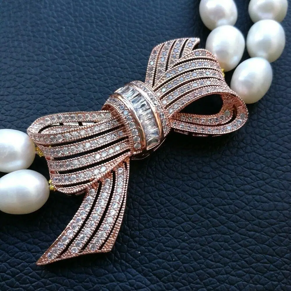 K101908 19 "-21" 2 нити белый жемчуг в форме риса CZ кулон ожерелье