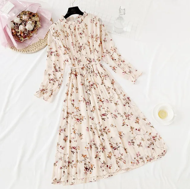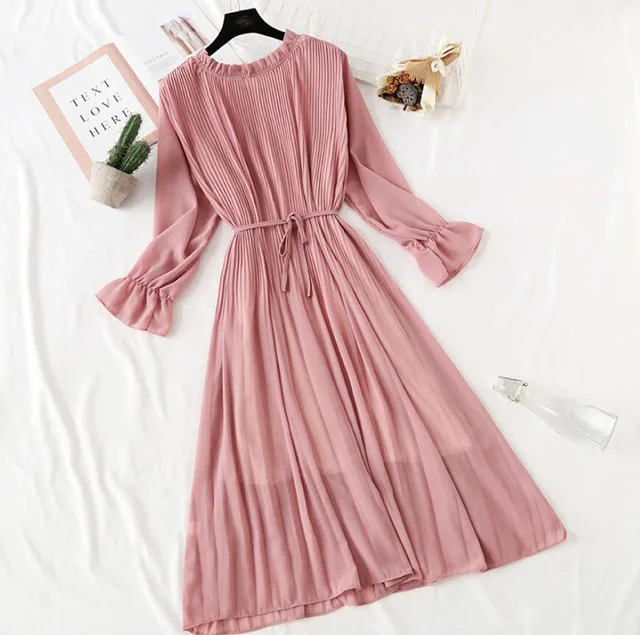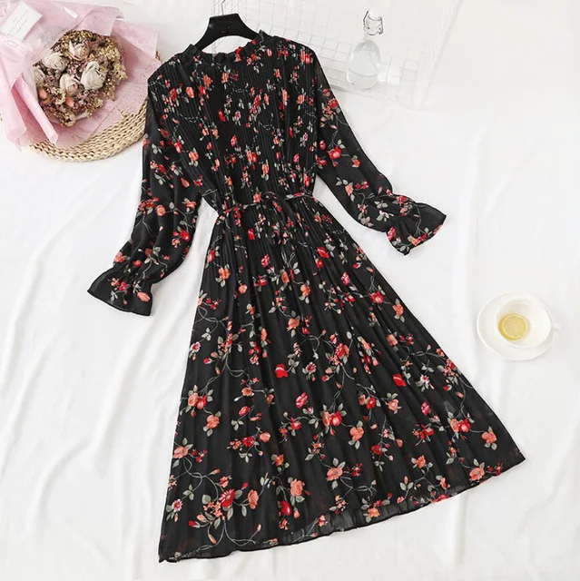 Null2020 весеннее и летнее новое горячее предложение женское Плиссированное шифоновое платье с принтом модное женское Повседневное платье с рукавами-колокольчиками в виде листьев лотоса