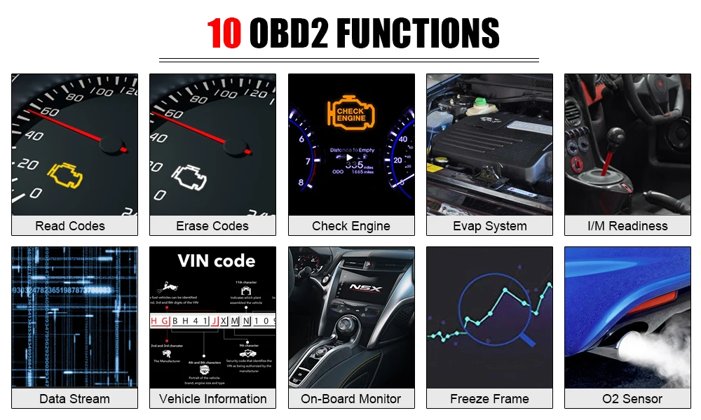 2. Мощные функции ThinkScan 1. Диагностика двигателя: Вы можете диагностировать систему двигателя через порт ecu obd2, поддерживает все 10 режимов тестирования OBDII, таких как данные в реальном времени, тест датчика O2, тест компонентов и многое другое; Считывайте и очищайте коды ошибок двигателя, узнайте точную проблему, отремонтируйте ее и выключите светильник двигателя MIL. 2. Три системы диагностики: Этот автомобильный сканер obd2 способен считывать и очищать коды неисправностей двигателя, подушки безопасности/SRS, ABS. 3. Электронный сброс стояночного тормоза EPB: Позволяет выполнять обслуживание и техническое обслуживание тормозных систем, включая деактивацию и активацию тормозной системы управления, кровотечение тормозной жидкости, открывание и закрытие тормозных колодок, и установка тормозов после замены диска или колодки. 4. Масляный светильник сброс обслуживания: Масляный светильник Reset menu позволяет сбросить сервисные лампы на инструментальном кластере. 5. Калибровка датчика угла поворота руля SAS Reset Позвольте вам выполнить калибровку датчика угла поворота руля. 6. Программирование системы контроля давления в шинах Позволяет проверить идентификаторы датчиков шин от транспортного средства ECU и выполнить программирование и сброс TPMS после замены шин и/или датчиков TPM и/или вращения шин.
