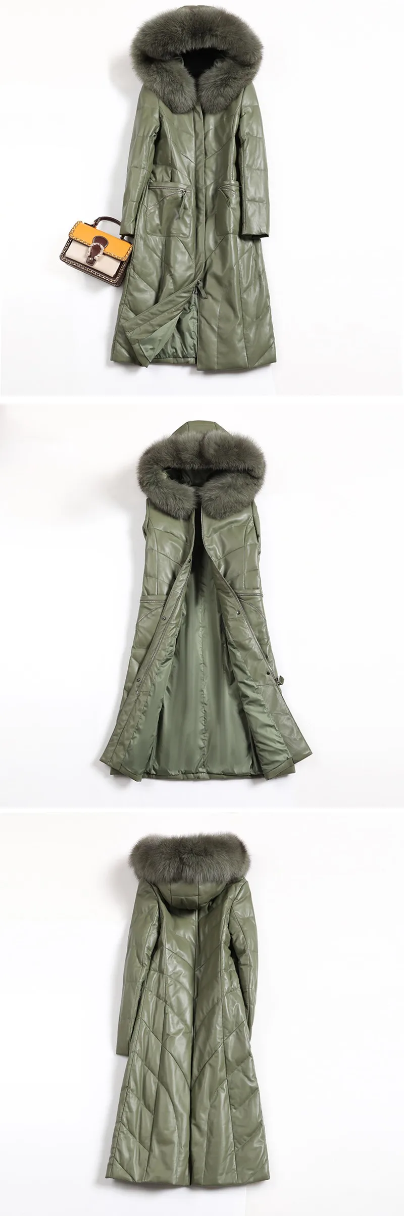 Пуховые парки из натуральной овечьей кожи с капюшоном из лисьего меха