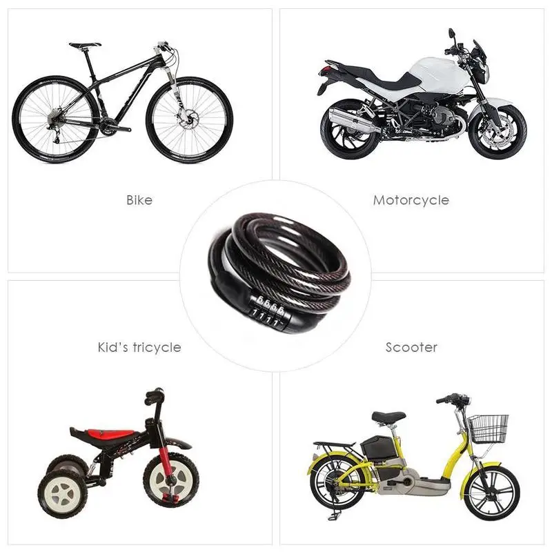 2. Высококачественный Марганцевый Стальной кабель, предотвращает отрезание. 4. Подходит для блокировки велосипеда, мотоцикла, мопеда, детской коляски и т. д.