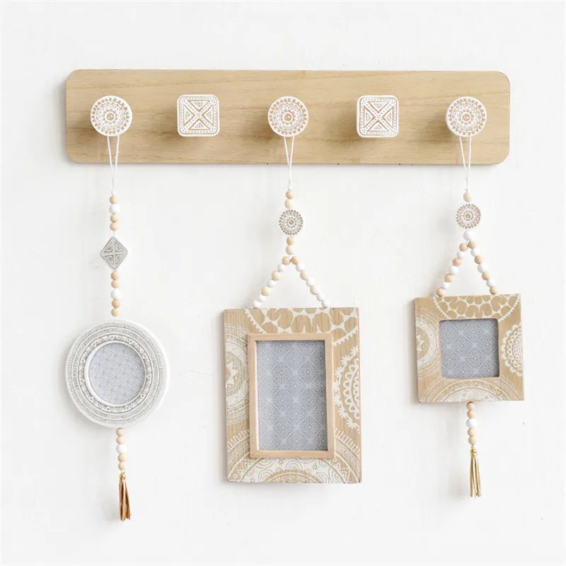 Характеристики: Материал: дерево Цвет: цвет дерева Тип: 3 крючка, 4 крючка, 5 крючков Размер стойки: 3 крючка --- 29,5 см x 10 см; 4 крючка --- 39,5 см x 10 см; 5 крючков --- 48 см x 10 см Настенный дизайн, экономит пространство. Удобно и подходит для хранения. Отличная идея для использования в спальне, ванной, гостиной