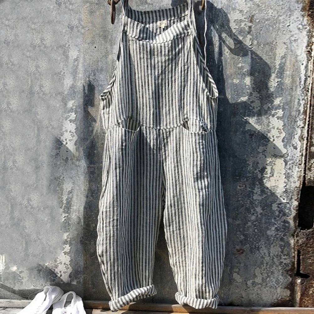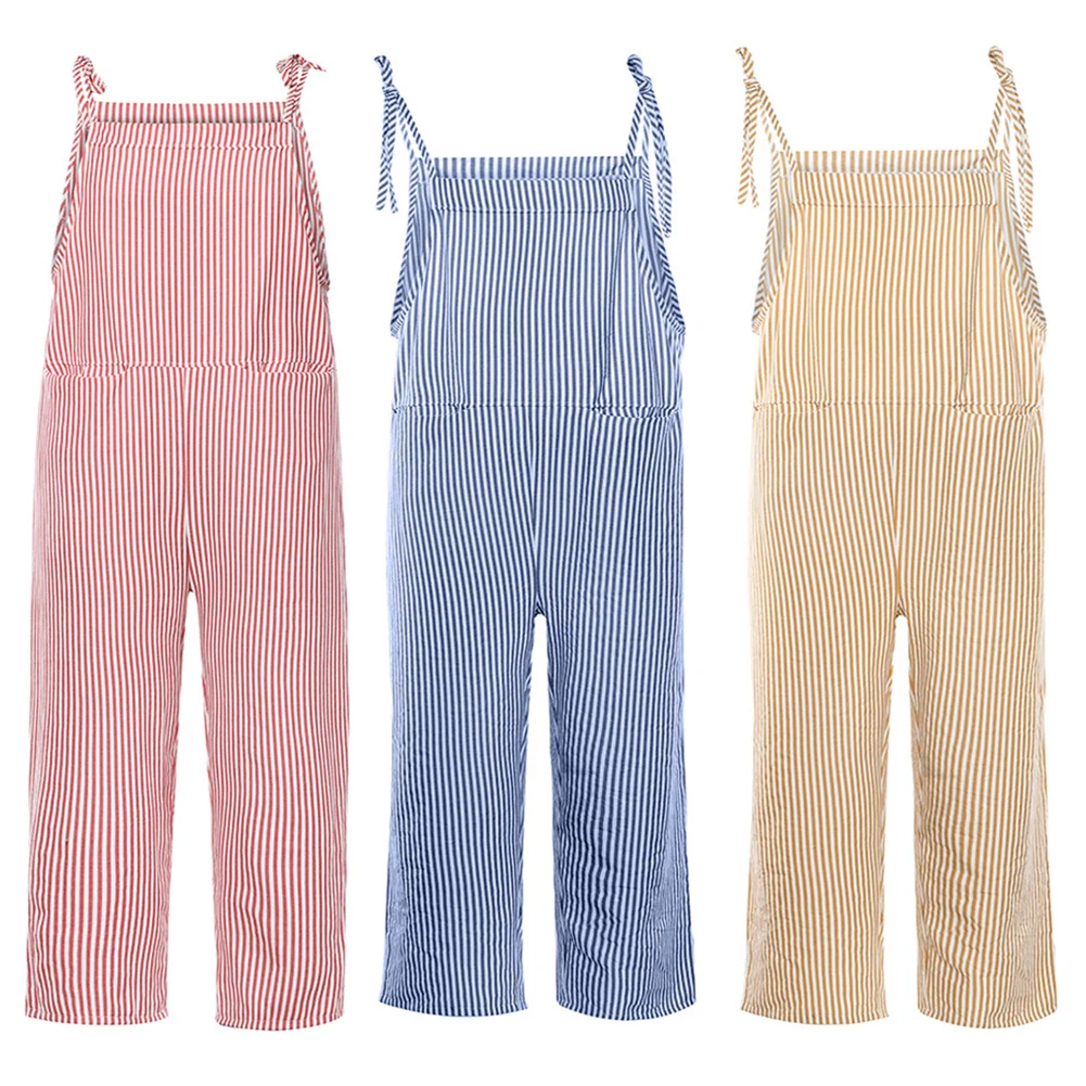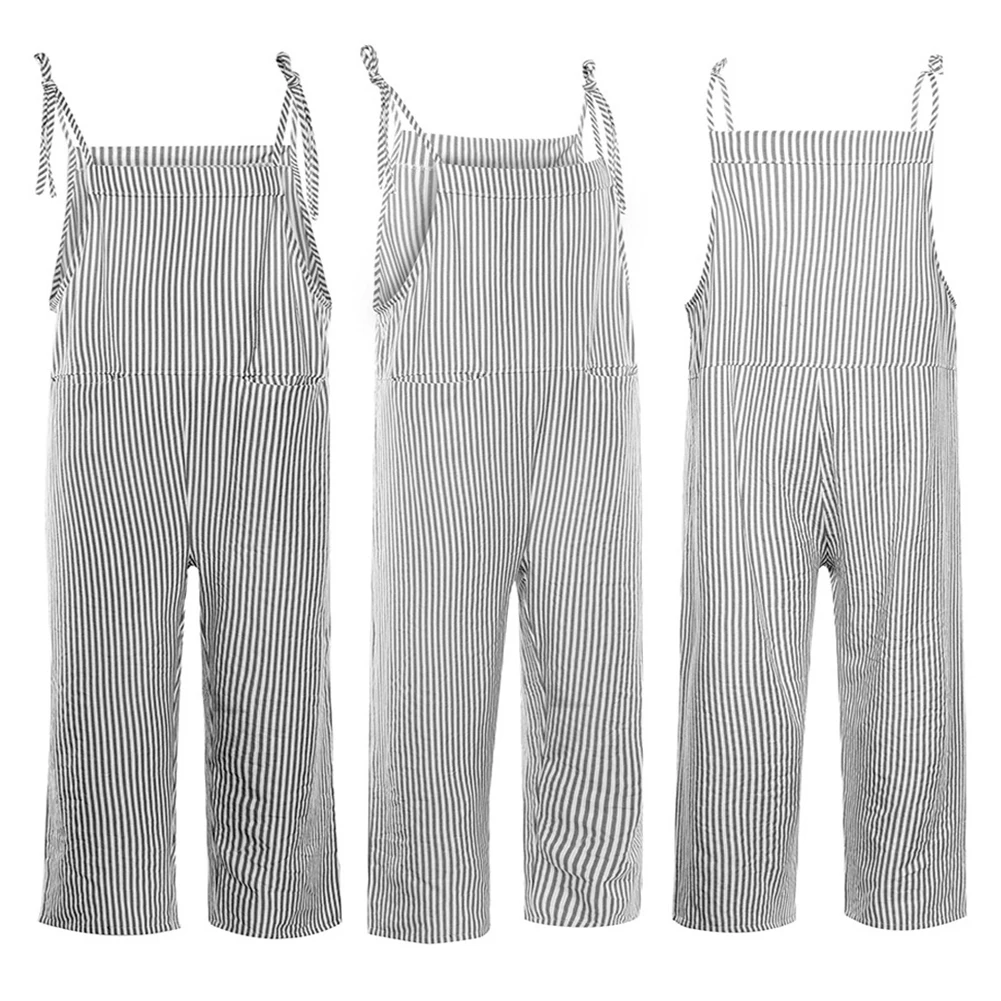 Женский Повседневный комбинезон в Вертикальную Полоску, комбинезон без рукавов с карманами, комбинезон