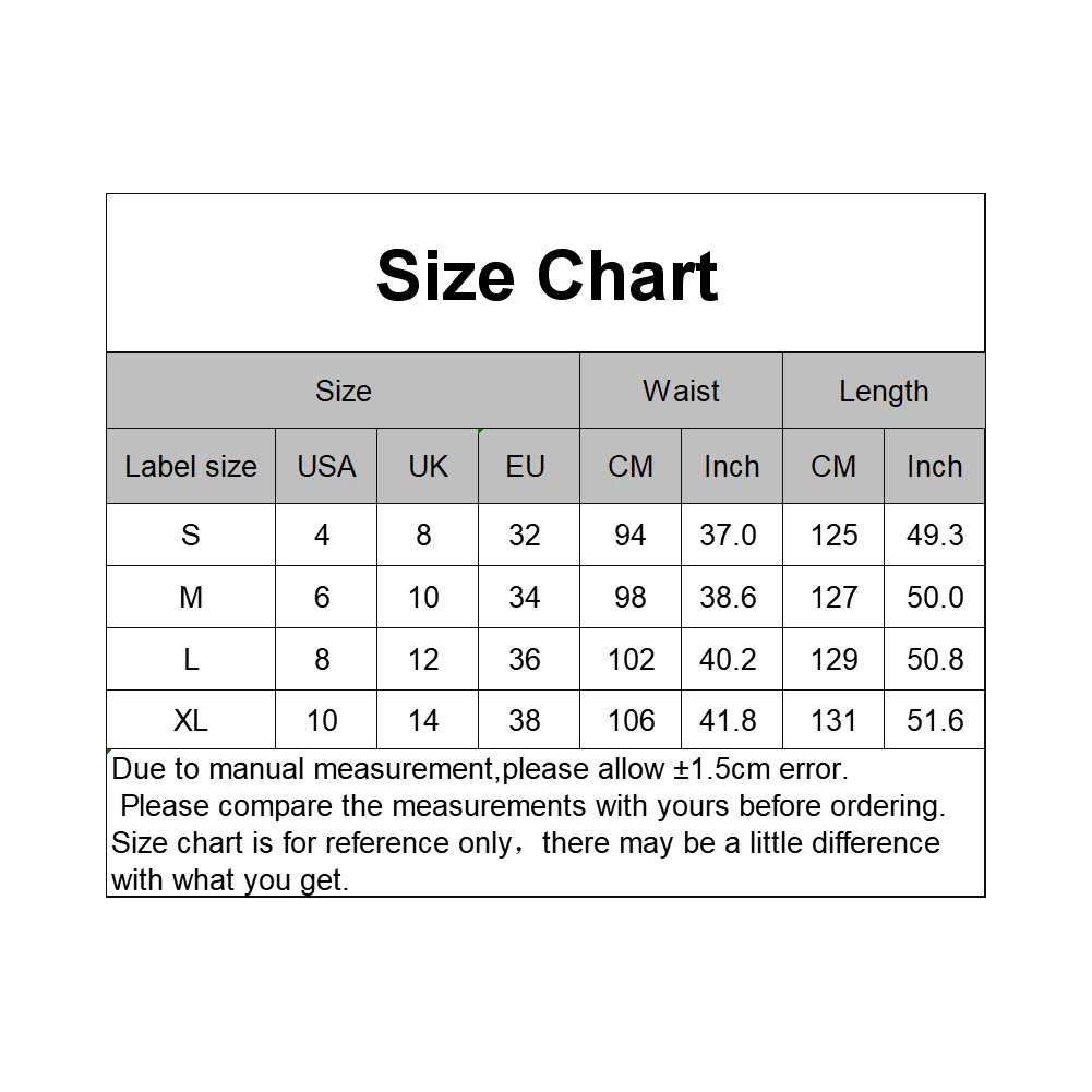 [Наш Размер S] Талия: 94 см/37 ", Длина: 125 см/49,2" (прибл.)