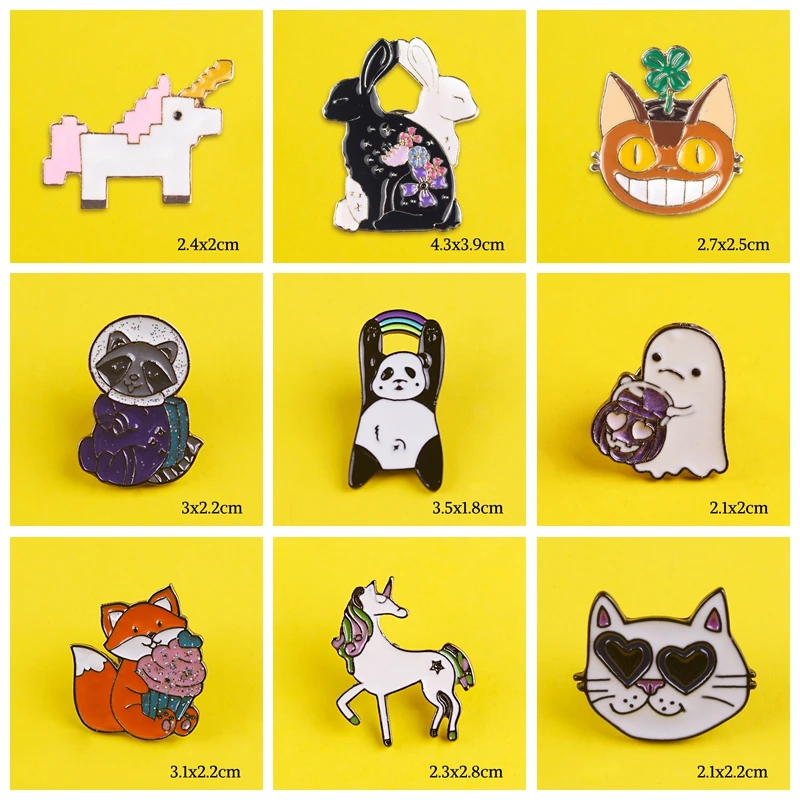 1 шт. микс Единорог Панда Кролик Рисунок Кот мультфильм металлические шпильки для бейджей милые отворот булавки брошки каваи животных Ювелирные изделия куртка
